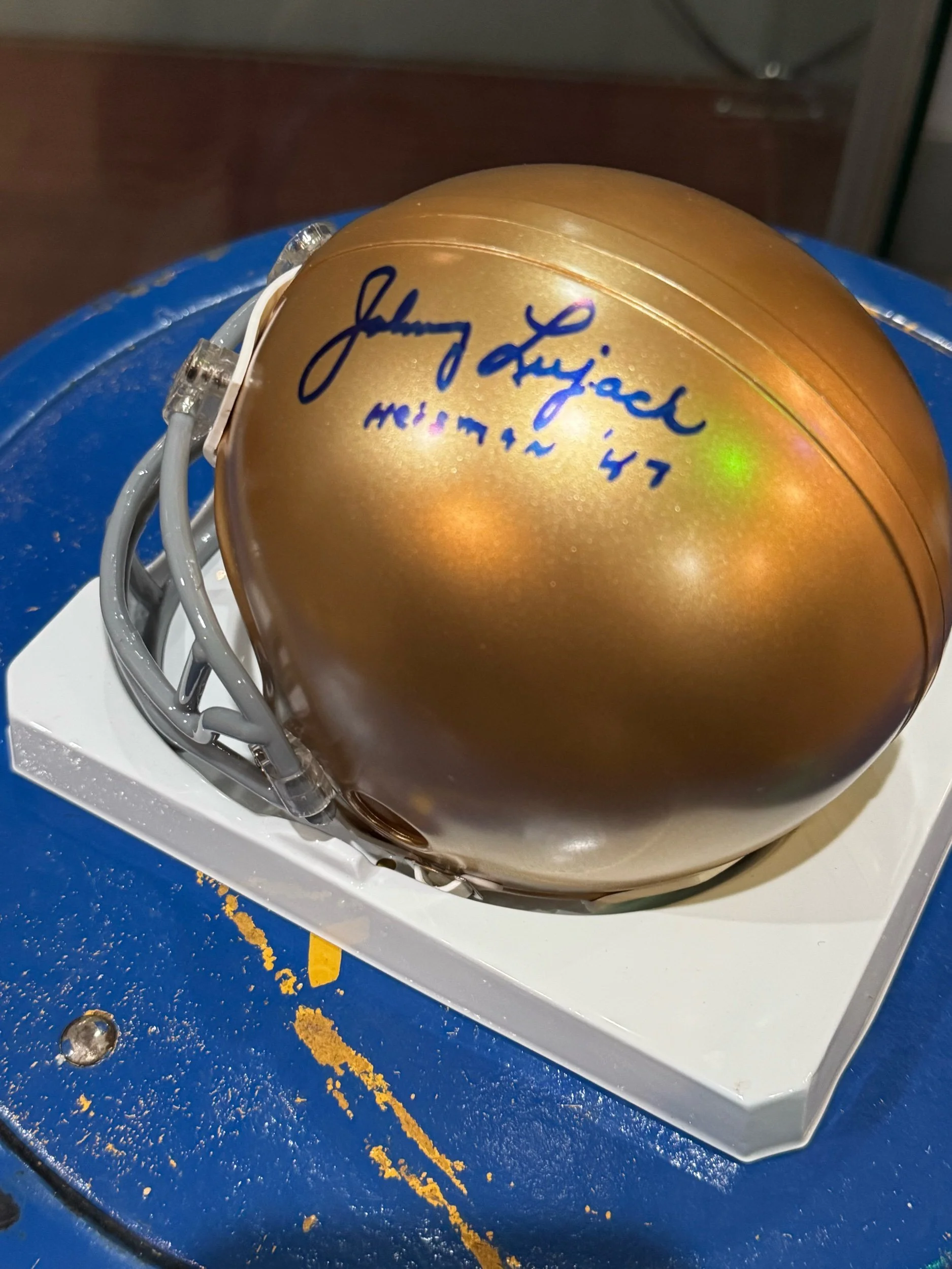 Notre Dame football mini helmet signed Johnny LuJack $275.00 Notre Dame football mini helmet signed Johnny LuJack Online Store › Notre Dame football mini helmet signed Johnny LuJack Purchase Added! Notre Dame football mini helmet signed Johnny LuJack
