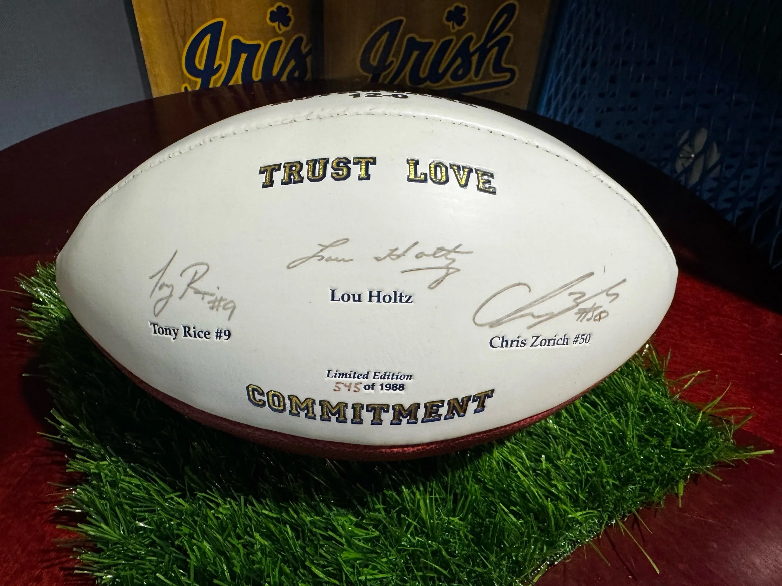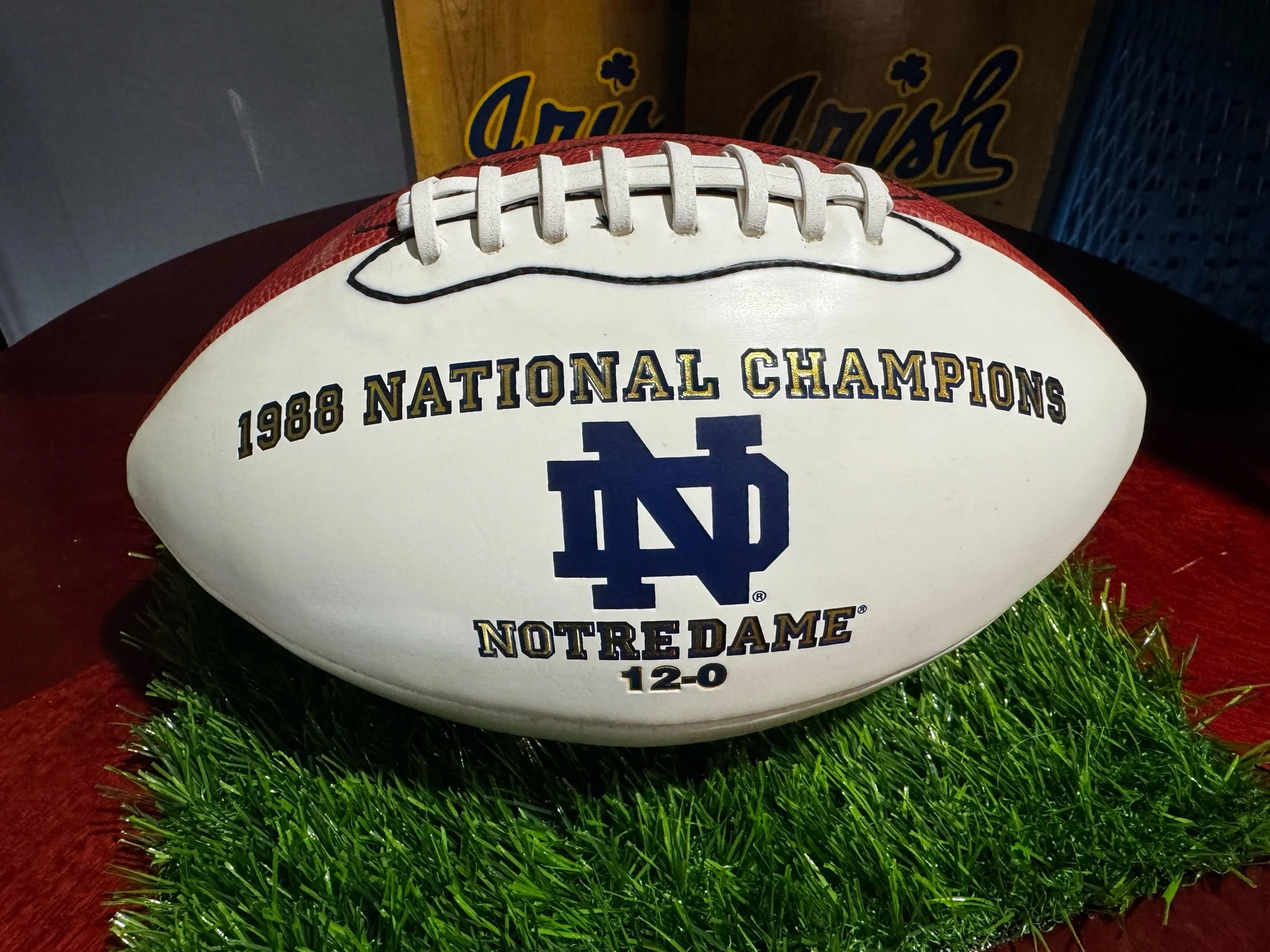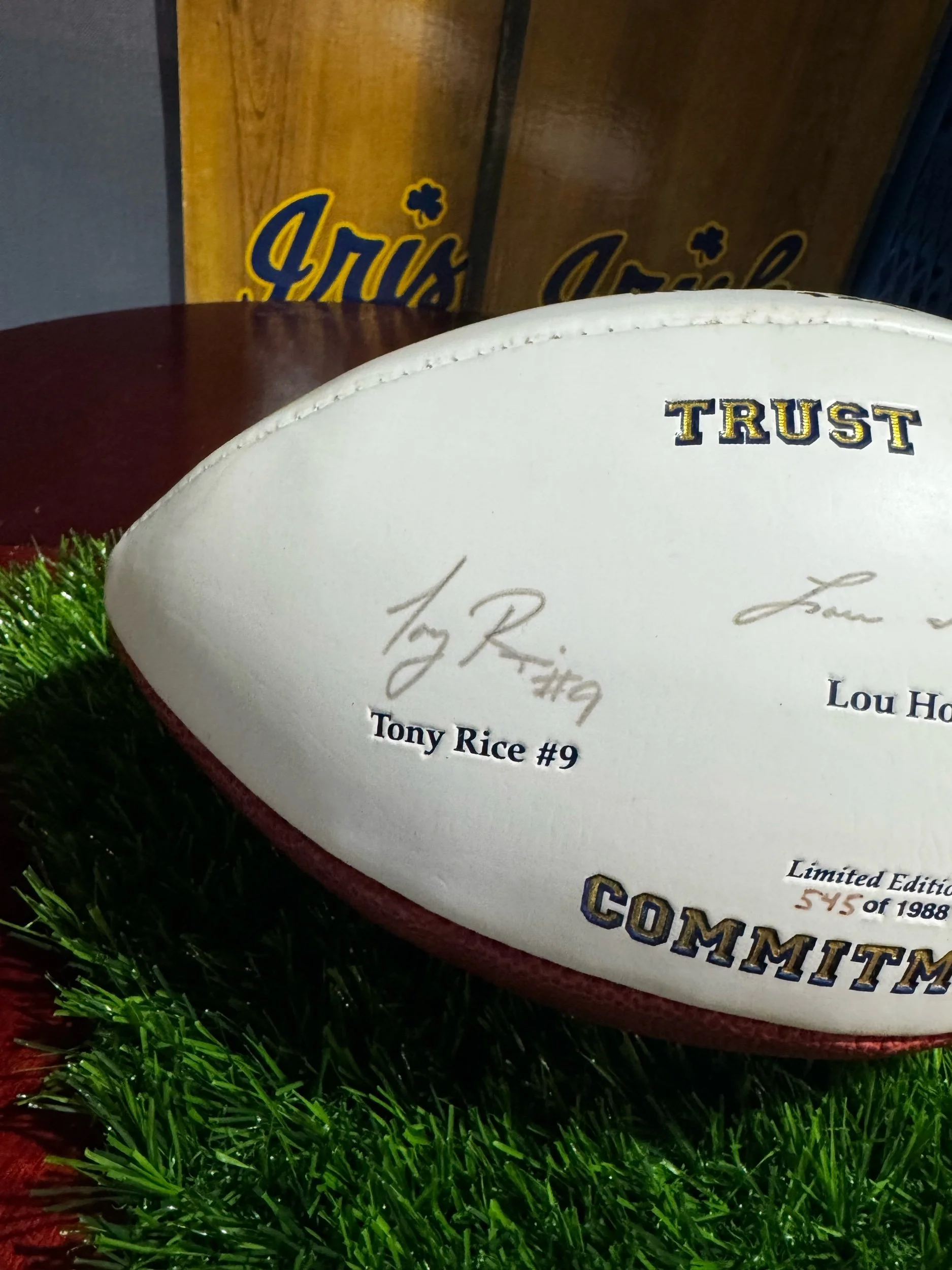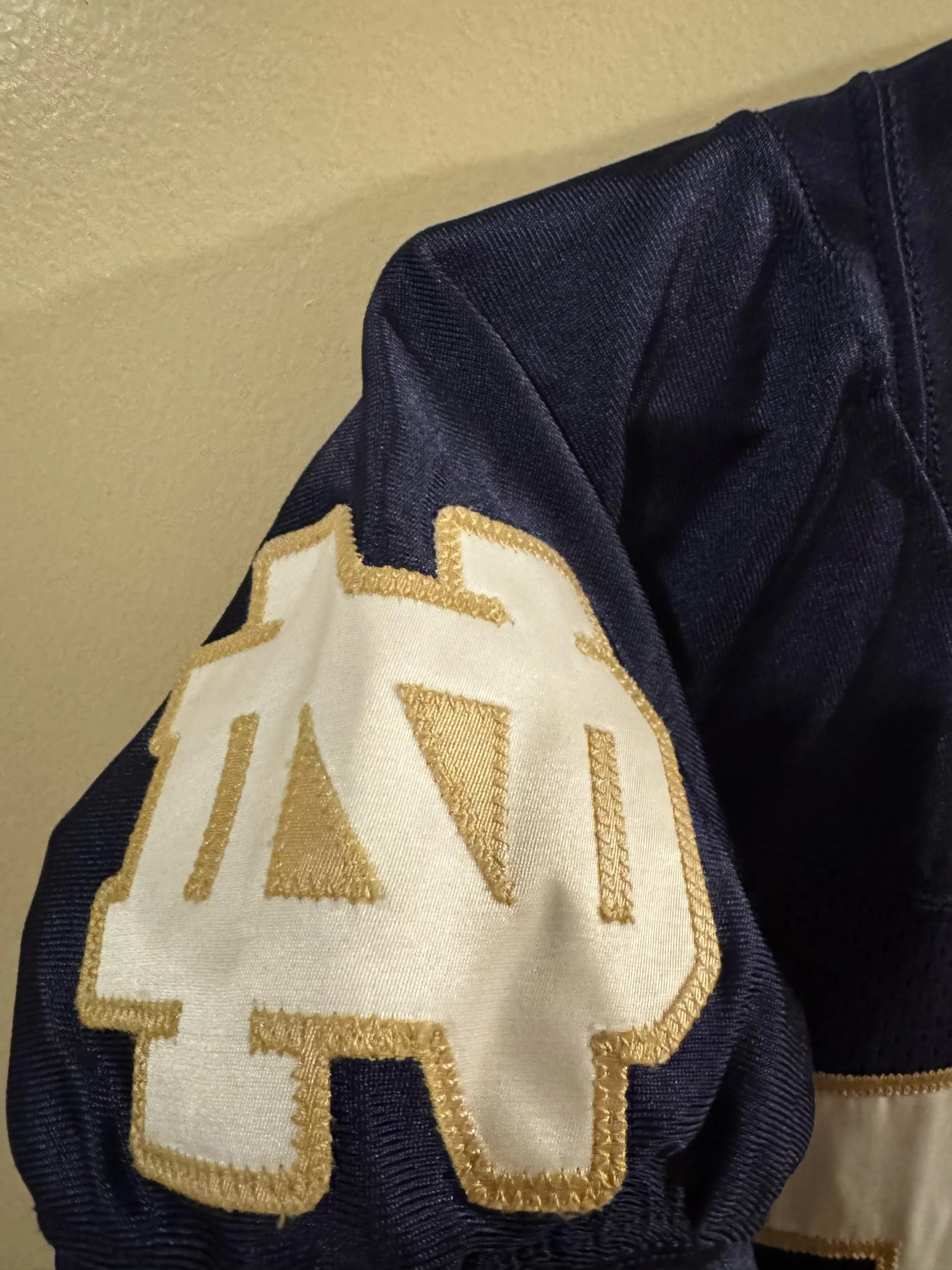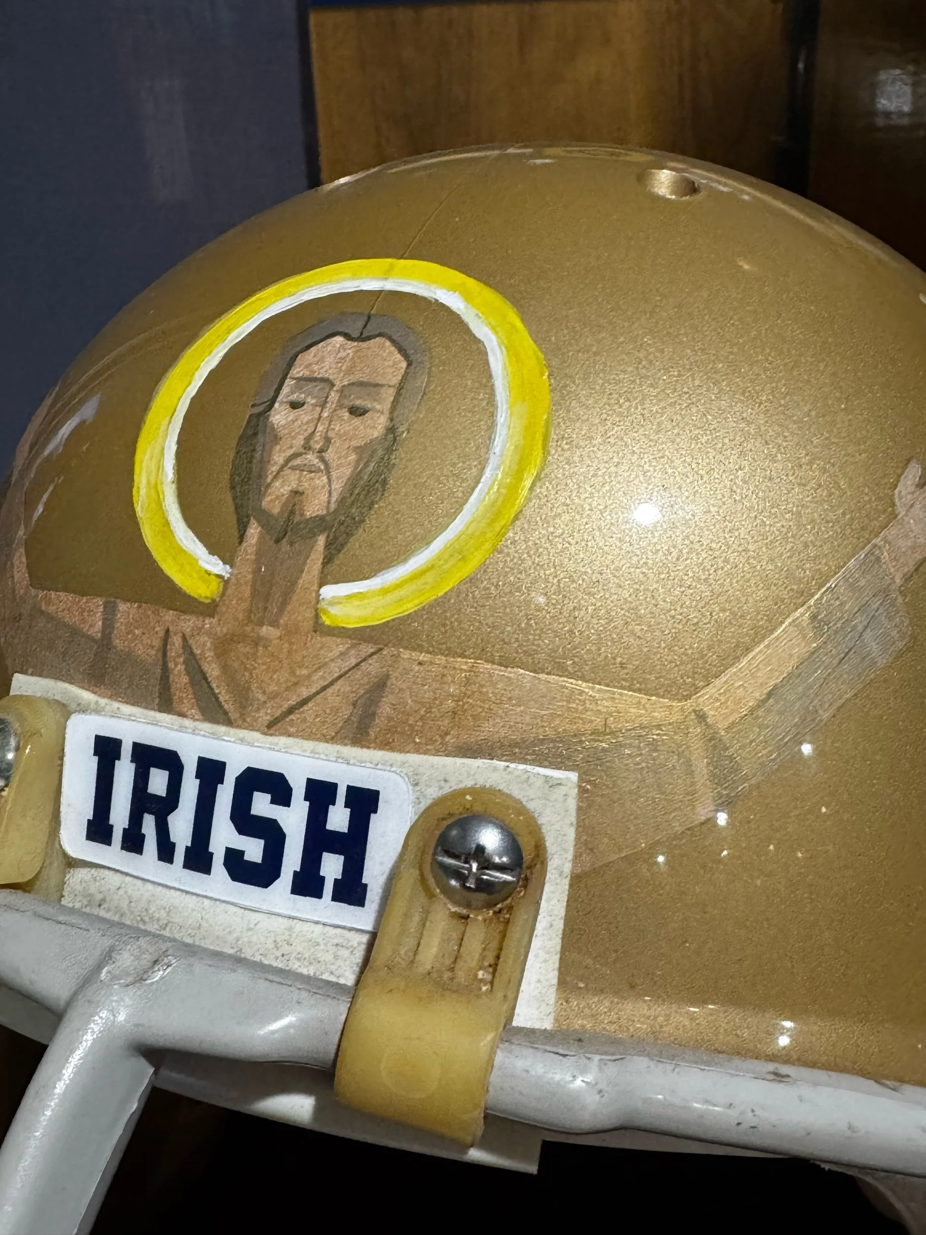Each Notre Dame football helmet shines with a golden luster, reflecting a legacy of excellence and the unwavering spirit of the Fighting Irish. Categories: All Signed Notre Dame Full Sized Helmets Famous Notre Dame Artists Clothing Legends of The Game Featured Footballs Helmets Online Store All | Signed Notre Dame Full Sized Helmets | Famous Notre Dame Artists | Clothing | Legends of The Game | Featured | Footballs | Helmets | LIMITED EDITION "NOTRE DAME" TEDDY BEAR BY COOPERSTOWN BEARS OFFICIALLY LICENSED $285.00 Full size 1988 National Championship Notre Dame football $90.00 Sold Out Full Size Replica Notre Dame ball helmet painted $135.00 VERY RARE: Antique Flesh-Colored Knute Rockne Bust $2,500.00 Bryant Young San Francisco 49ers Team Issued Football Jersey Signed Sale Price: $685.00 Original Price: $785.00 Sale NOTRE DAME HEAD COACH KNUTE ROCKNE LARGE BUST JERRY MCKENNA $12,500.00 Notre Dame Football Movie Rudy Script signed by Rudy Ruettiger $385.00 RARE 1966 NOTRE DAME FOOTBALL VS MICHIGAN STATE FOOTBALL TICKET/PROGRAM $875.00 RARE 2012 Notre Dame Football Wilson Football Dublin Ireland $1,500.00 Rare Framed Notre Dame Four Horsemen Signatures Crowley, Layden, Miller, Stuhldreher. Grantland Rice $5,750.00 Full Size Notre Dame Football signed Bettis, Golic, and Rocket $185.00 1976 Full Size Notre Dame football Signed Joe Montana $185.00 Sold Out Seven Notre Dame Heisman trophy winners ballots $1,250.00 2019 TEAM ISSUED NOTRE DAME FOOTBALL UNDER ARMOUR GAME PANTS 150 YR GAME #71 $50.00 Use team issued Notre Dame baseball cleats, and new gloves $55.00 Used team issue, Notre Dame baseball Bryce Harper under Armour cleats, and New gloves $55.00 Used team issued Notre Dame football cleats and new gloves $35.00 Sold Out 2017 Game Used Notre Dame Football Game Pants #97 $50.00 Team Issued Notre Dame Football Home Jersey #16 $450.00 Team Issued Notre Dame Football Home Jersey #80 $475.00 2010 Team Issued Notre Dame Football Home Jersey $300.00 Used team issued Notre Dame football gloves $25.00 Sold Out Used team issued Notre Dame football gloves and cleats $40.00 Sold Out Notre Dame Football Jeremiyah Love signed photo 8x10 $85.00 Sold Out Limited Notre Dame football cooperstown Bear. $300.00 2010 HARRISON SMITH GAME USED NOTRE DAME FOOTBALL ADIDAS JERSEY HOME STEINER $1,850.00 2009 GAME USED NOTRE DAME FOOTBALL HOME JERSEY STEINER COA JIMMY CLAUSEN $1,500.00 2002 Notre Dame football banner used at the bowl game displayed at the ND ALUMNI ASSOCIATION $170.00 The FOUR WINNERS by KNUTE ROCKNE the story of a great football team signed Jack Rockne $350.00 ALL RISE THE REMARKABLE JOURNEY OF ALAN PAGE BY BILL MCGRANE SIGNED ALAN PAGE $250.00 GOD, COUNTRY, NOTRE DAME THE AUTOBIOGRAPHY OF THEODORE M. HESBURGH WITH JERRY REEDY $225.00 Sold Out Notre Dame Where have you gone? Signed Author Eric Hansen & Robin Weber $125.00 Simply Devine Memoirs of a Hall Of Fame coach Book Signed Dan Devine $175.00 Sold Out TRAVELS WITH TED & NED THEODORE M. HESBURGH EDITED BY JERRY REEDY SIGNED $125.00 University of Notre Dame Aerial Photo matted Cartier Field $195.00 1996 Tracy Stouffer University of Notre Dame Framed picture $185.00 Rare 2012 Team issued Notre Dame Football Shamrock Series Helmet $10,500.00 Wild Sports 5501-ND NCAA Notre Dame Fighting Irish Leather Office Chair $585.00 Circa 1990s Notre Dame Football Jersey #40 $325.00 Circa Early 2000s Notre Dame Football Jersey #1 $325.00 Circa 1990s Notre Dame Football Jersey #5 $325.00 Replica Signed Michael Mayer Jersey Inscribed Beckett $165.00 Replica Signed Lou Holtz Jersey Inscribed JSA $185.00 Sold Out Replica Signed Rudy Ruettiger Jersey Inscribed JSA $165.00 Sold Out Replica Signed Rudy Ruettiger jersey Inscribed Beckett COA $165.00 Sold Out Authentic Notre Dame Football Locker $4,500.00 Sold Out Authentic 1923 Notre Dame Football vs Purdue Football Ticket stub $2,750.00 Authentic 1930 Notre Dame Football vs University of Southern California Football Ticket stub $1,500.00 1927 Notre Dame Football vs USC Football Ticket Authentic $1,350.00 Notre Dame Football Coach Knute Rockne Original Photo & Signature $3,850.00 Sold Out Novel by Knute Rockne: "The Four Winners: The Head, The Hands, The Foot, The Ball." Hardcover, First Edition, signed Knute Rockne $4,650.00 Notre Dame Football Replica Jersey Signed Kyle Rudolph COA $145.00 Notre Dame Football Replica Jersey Signed Kris Haines $155.00 Notre Dame Football Replica Jersey Signed Wes Pritchett COA $125.00 Notre Dame Football Replica Jersey Signed Kyren Williams COA $185.00 Notre Dame Football Coach Knute Rockne Framed Photo copy Cover Time Magazine $25.50 Sold Out 1973 Notre Dame Football National Championship Framed Poster $85.00 Original Notre Dame Football Coach Rockne Photo PSA W/ dated magazine in photo $2,350.00 Rare Original Jim Wainwright Notre Dame Painting Signed $3,500.00 Authentic Notre Dame Football Stadium Brick $265.00 Rare Notre Dame and St Mary’s Music Sheet $185.00 Unique Notre Dame John Holladay Poster $150.00 Sold Out Notre Dame Baseball Full Size Helmet Signed by Jeff Samardzija $1,200.00 Rare Jeff Samardzija football/baseball Bobblehead $225.00 Notre Dame Football Mini Helmet Signed Benjamin Morrison COA $165.00 2017 Replica Notre Dame Football Rockne Heritage Game helmet Full Size $245.00 Sold Out NOTRE DAME FOOTBALL MINI HELMET SIGNED Drayk Bowen COA $165.00 Replica Notre Dame Football Joe Montana Signed Jersey COA $385.00 Sold Out Notre Dame football replica jersey signed Tim Brown COA $250.00 Sold Out Original Notre Dame football 1927 team photo Knute Rockne Head Coach $2,850.00 Original Notre Dame football 1926 team photo Knute Rockne Head Coach $1,950.00 University of Notre Dame the Spirit of Notre Dame Oak room miniatures usher $225.00 Sold Out Notre Dame football coach LOU HOLTZ STATUE with box $350.00 Notre Dame football coach Ara Parseghian bobble head with box $450.00 Notre Dame football mini helmet signed Ryan Grant $125.00 Notre Dame Stadium Commemorative coin First g