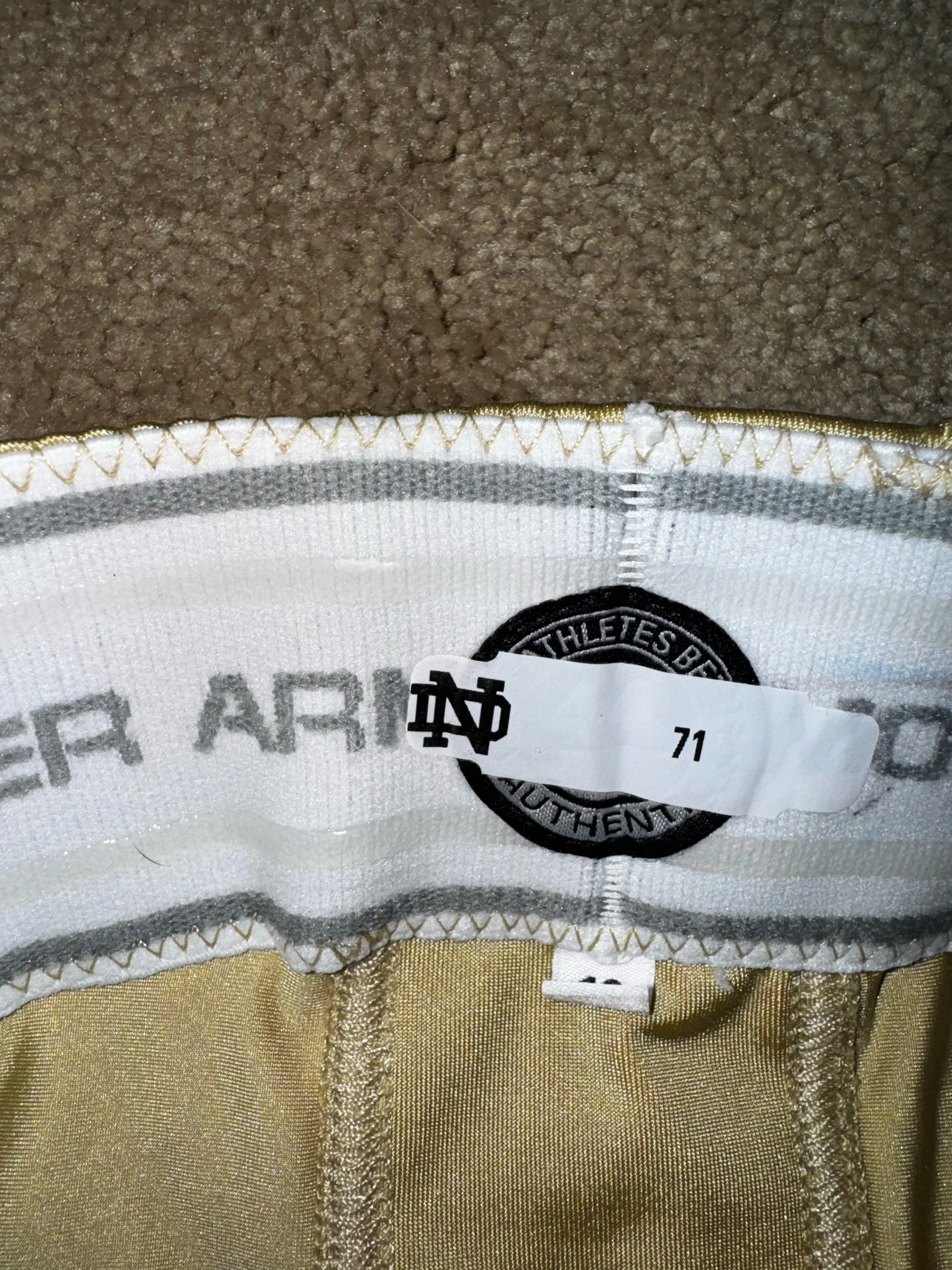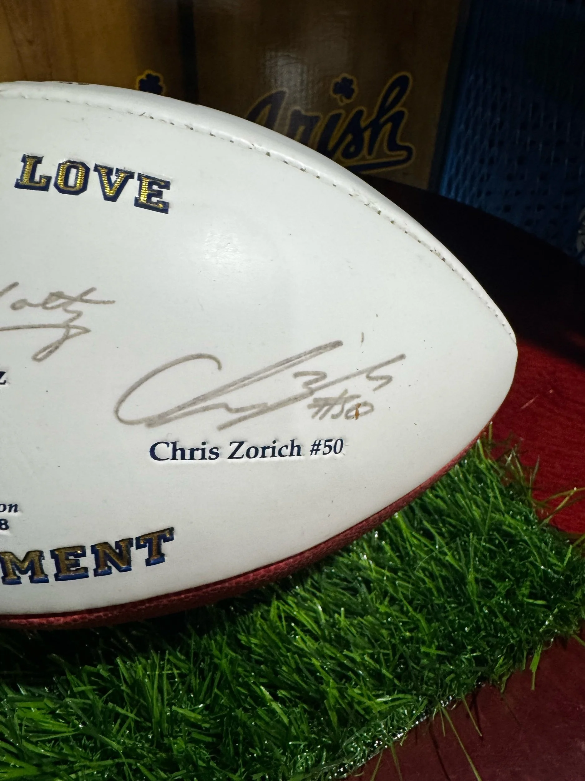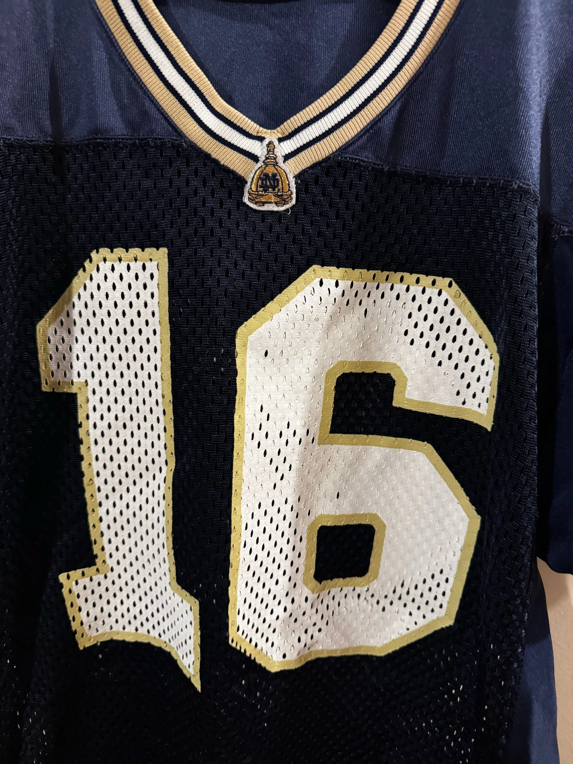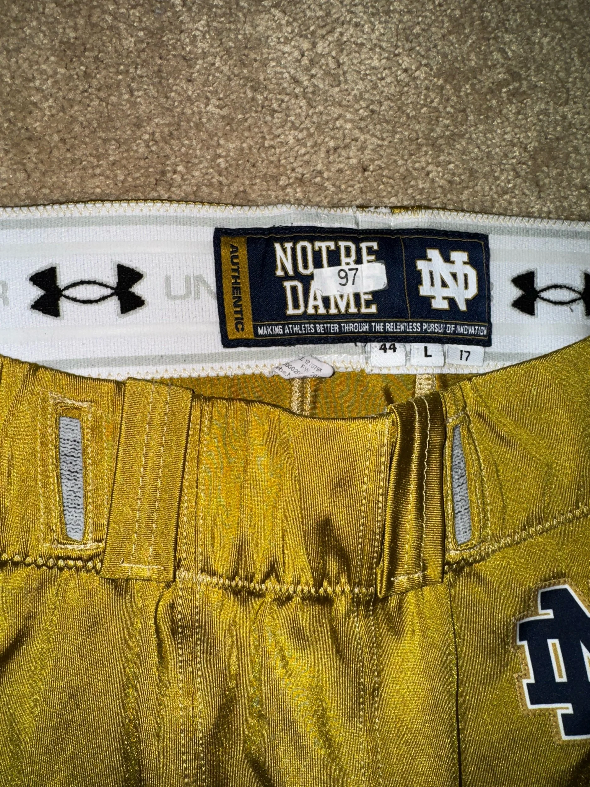 Each Notre Dame football helmet shines with a golden luster, reflecting a legacy of excellence and the unwavering spirit of the Fighting Irish. Categories: All Signed Notre Dame Full Sized Helmets Famous Notre Dame Artists Clothing Legends of The Game Featured Footballs Helmets Online Store All | Signed Notre Dame Full Sized Helmets | Famous Notre Dame Artists | Clothing | Legends of The Game | Featured | Footballs | Helmets | LIMITED EDITION "NOTRE DAME" TEDDY BEAR BY COOPERSTOWN BEARS OFFICIALLY LICENSED $285.00 Full size 1988 National Championship Notre Dame football $90.00 Sold Out Full Size Replica Notre Dame ball helmet painted $135.00 VERY RARE: Antique Flesh-Colored Knute Rockne Bust $2,500.00 Bryant Young San Francisco 49ers Team Issued Football Jersey Signed Sale Price: $685.00 Original Price: $785.00 Sale NOTRE DAME HEAD COACH KNUTE ROCKNE LARGE BUST JERRY MCKENNA $12,500.00 Notre Dame Football Movie Rudy Script signed by Rudy Ruettiger $385.00 RARE 1966 NOTRE DAME FOOTBALL VS MICHIGAN STATE FOOTBALL TICKET/PROGRAM $875.00 RARE 2012 Notre Dame Football Wilson Football Dublin Ireland $1,500.00 Rare Framed Notre Dame Four Horsemen Signatures Crowley, Layden, Miller, Stuhldreher. Grantland Rice $5,750.00 Full Size Notre Dame Football signed Bettis, Golic, and Rocket $185.00 1976 Full Size Notre Dame football Signed Joe Montana $185.00 Sold Out Seven Notre Dame Heisman trophy winners ballots $1,250.00 2019 TEAM ISSUED NOTRE DAME FOOTBALL UNDER ARMOUR GAME PANTS 150 YR GAME #71 $50.00 Use team issued Notre Dame baseball cleats, and new gloves $55.00 Used team issue, Notre Dame baseball Bryce Harper under Armour cleats, and New gloves $55.00 Used team issued Notre Dame football cleats and new gloves $35.00 Sold Out 2017 Game Used Notre Dame Football Game Pants #97 $50.00 Team Issued Notre Dame Football Home Jersey #16 $450.00 Team Issued Notre Dame Football Home Jersey #80 $475.00 2010 Team Issued Notre Dame Football Home Jersey $300.00 Used team issued Notre Dame football gloves $25.00 Sold Out Used team issued Notre Dame football gloves and cleats $40.00 Sold Out Notre Dame Football Jeremiyah Love signed photo 8x10 $85.00 Sold Out Limited Notre Dame football cooperstown Bear. $300.00 2010 HARRISON SMITH GAME USED NOTRE DAME FOOTBALL ADIDAS JERSEY HOME STEINER $1,850.00 2009 GAME USED NOTRE DAME FOOTBALL HOME JERSEY STEINER COA JIMMY CLAUSEN $1,500.00 2002 Notre Dame football banner used at the bowl game displayed at the ND ALUMNI ASSOCIATION $170.00 The FOUR WINNERS by KNUTE ROCKNE the story of a great football team signed Jack Rockne $350.00 ALL RISE THE REMARKABLE JOURNEY OF ALAN PAGE BY BILL MCGRANE SIGNED ALAN PAGE $250.00 GOD, COUNTRY, NOTRE DAME THE AUTOBIOGRAPHY OF THEODORE M. HESBURGH WITH JERRY REEDY $225.00 Sold Out Notre Dame Where have you gone? Signed Author Eric Hansen & Robin Weber $125.00 Simply Devine Memoirs of a Hall Of Fame coach Book Signed Dan Devine $175.00 Sold Out TRAVELS WITH TED & NED THEODORE M. HESBURGH EDITED BY JERRY REEDY SIGNED $125.00 University of Notre Dame Aerial Photo matted Cartier Field $195.00 1996 Tracy Stouffer University of Notre Dame Framed picture $185.00 Rare 2012 Team issued Notre Dame Football Shamrock Series Helmet $10,500.00 Wild Sports 5501-ND NCAA Notre Dame Fighting Irish Leather Office Chair $585.00 Circa 1990s Notre Dame Football Jersey #40 $325.00 Circa Early 2000s Notre Dame Football Jersey #1 $325.00 Circa 1990s Notre Dame Football Jersey #5 $325.00 Replica Signed Michael Mayer Jersey Inscribed Beckett $165.00 Replica Signed Lou Holtz Jersey Inscribed JSA $185.00 Sold Out Replica Signed Rudy Ruettiger Jersey Inscribed JSA $165.00 Sold Out Replica Signed Rudy Ruettiger jersey Inscribed Beckett COA $165.00 Sold Out Authentic Notre Dame Football Locker $4,500.00 Sold Out Authentic 1923 Notre Dame Football vs Purdue Football Ticket stub $2,750.00 Authentic 1930 Notre Dame Football vs University of Southern California Football Ticket stub $1,500.00 1927 Notre Dame Football vs USC Football Ticket Authentic $1,350.00 Notre Dame Football Coach Knute Rockne Original Photo & Signature $3,850.00 Sold Out Novel by Knute Rockne: "The Four Winners: The Head, The Hands, The Foot, The Ball." Hardcover, First Edition, signed Knute Rockne $4,650.00 Notre Dame Football Replica Jersey Signed Kyle Rudolph COA $145.00 Notre Dame Football Replica Jersey Signed Kris Haines $155.00 Notre Dame Football Replica Jersey Signed Wes Pritchett COA $125.00 Notre Dame Football Replica Jersey Signed Kyren Williams COA $185.00 Notre Dame Football Coach Knute Rockne Framed Photo copy Cover Time Magazine $25.50 Sold Out 1973 Notre Dame Football National Championship Framed Poster $85.00 Original Notre Dame Football Coach Rockne Photo PSA W/ dated magazine in photo $2,350.00 Rare Original Jim Wainwright Notre Dame Painting Signed $3,500.00 Authentic Notre Dame Football Stadium Brick $265.00 Rare Notre Dame and St Mary’s Music Sheet $185.00 Unique Notre Dame John Holladay Poster $150.00 Sold Out Notre Dame Baseball Full Size Helmet Signed by Jeff Samardzija $1,200.00 Rare Jeff Samardzija football/baseball Bobblehead $225.00 Notre Dame Football Mini Helmet Signed Benjamin Morrison COA $165.00 2017 Replica Notre Dame Football Rockne Heritage Game helmet Full Size $245.00 Sold Out NOTRE DAME FOOTBALL MINI HELMET SIGNED Drayk Bowen COA $165.00 Replica Notre Dame Football Joe Montana Signed Jersey COA $385.00 Sold Out Notre Dame football replica jersey signed Tim Brown COA $250.00 Sold Out Original Notre Dame football 1927 team photo Knute Rockne Head Coach $2,850.00 Original Notre Dame football 1926 team photo Knute Rockne Head Coach $1,950.00 University of Notre Dame the Spirit of Notre Dame Oak room miniatures usher $225.00 Sold Out Notre Dame football coach LOU HOLTZ STATUE with box $350.00 Notre Dame football coach Ara Parseghian bobble head with box $450.00 Notre Dame football mini helmet signed Ryan Grant $125.00 Notre Dame Stadium Commemorative coin First g