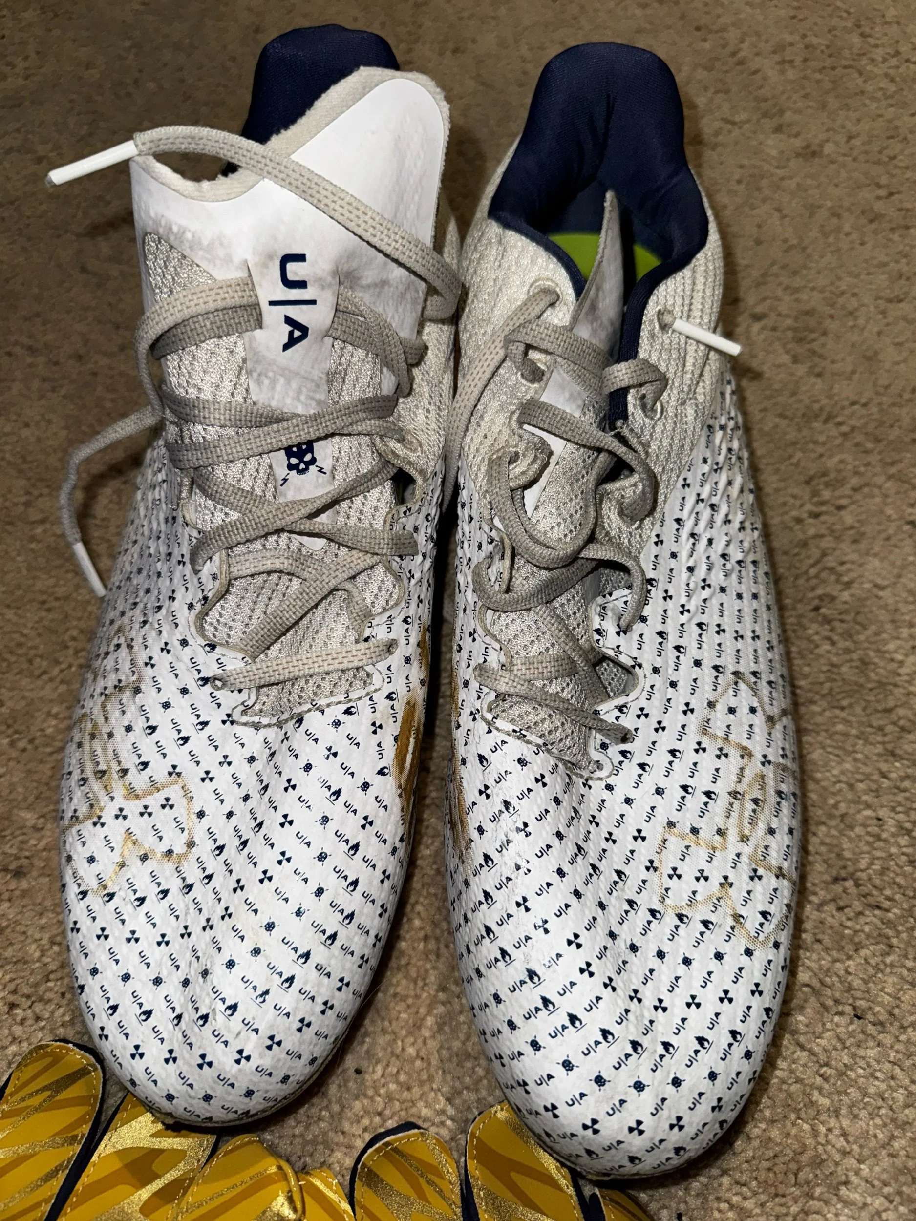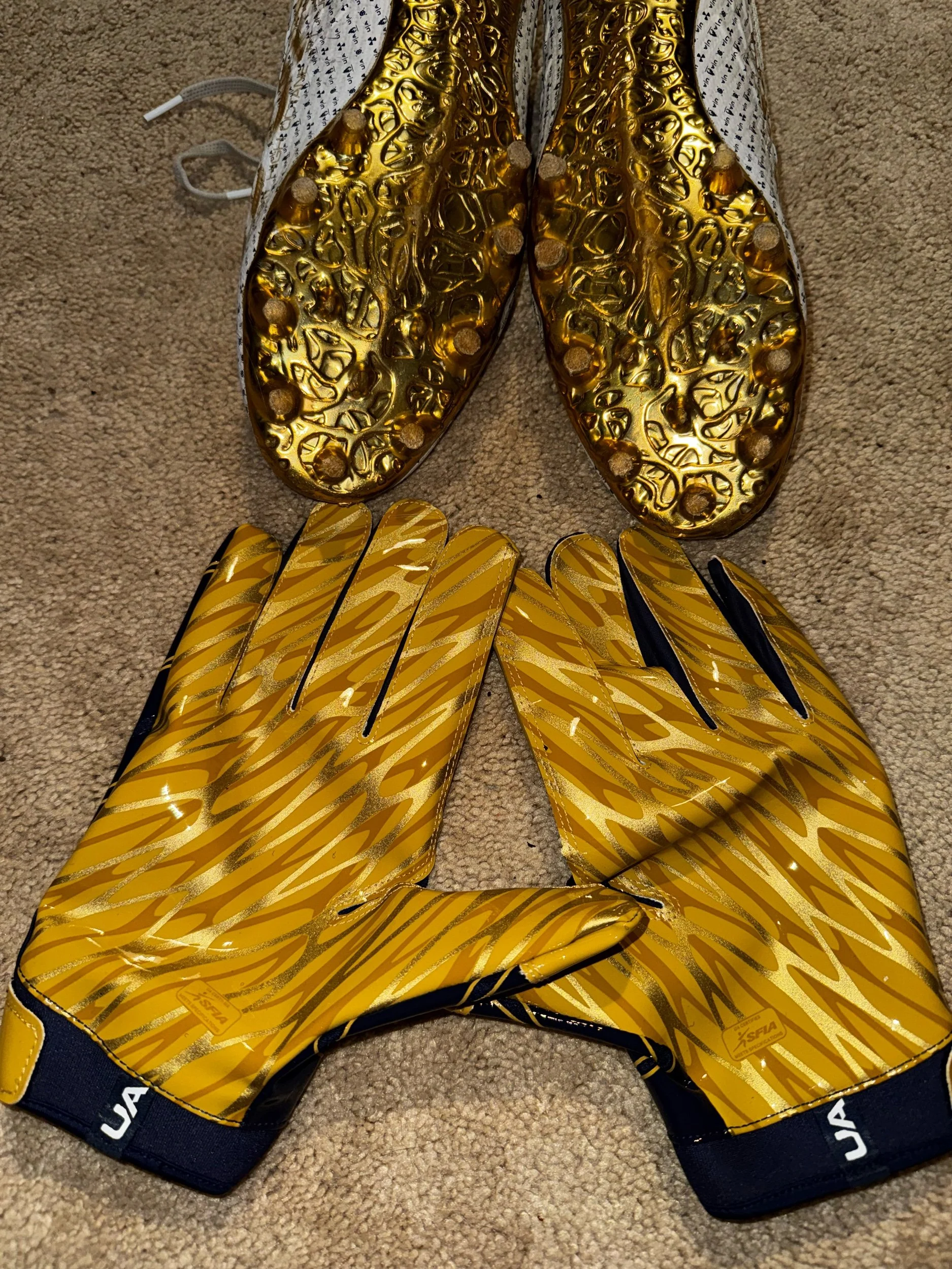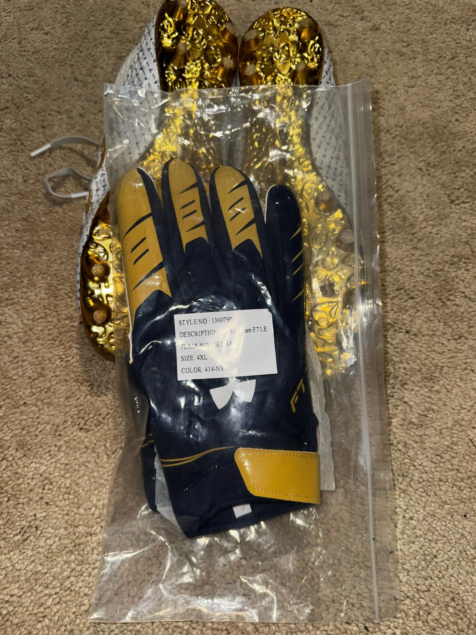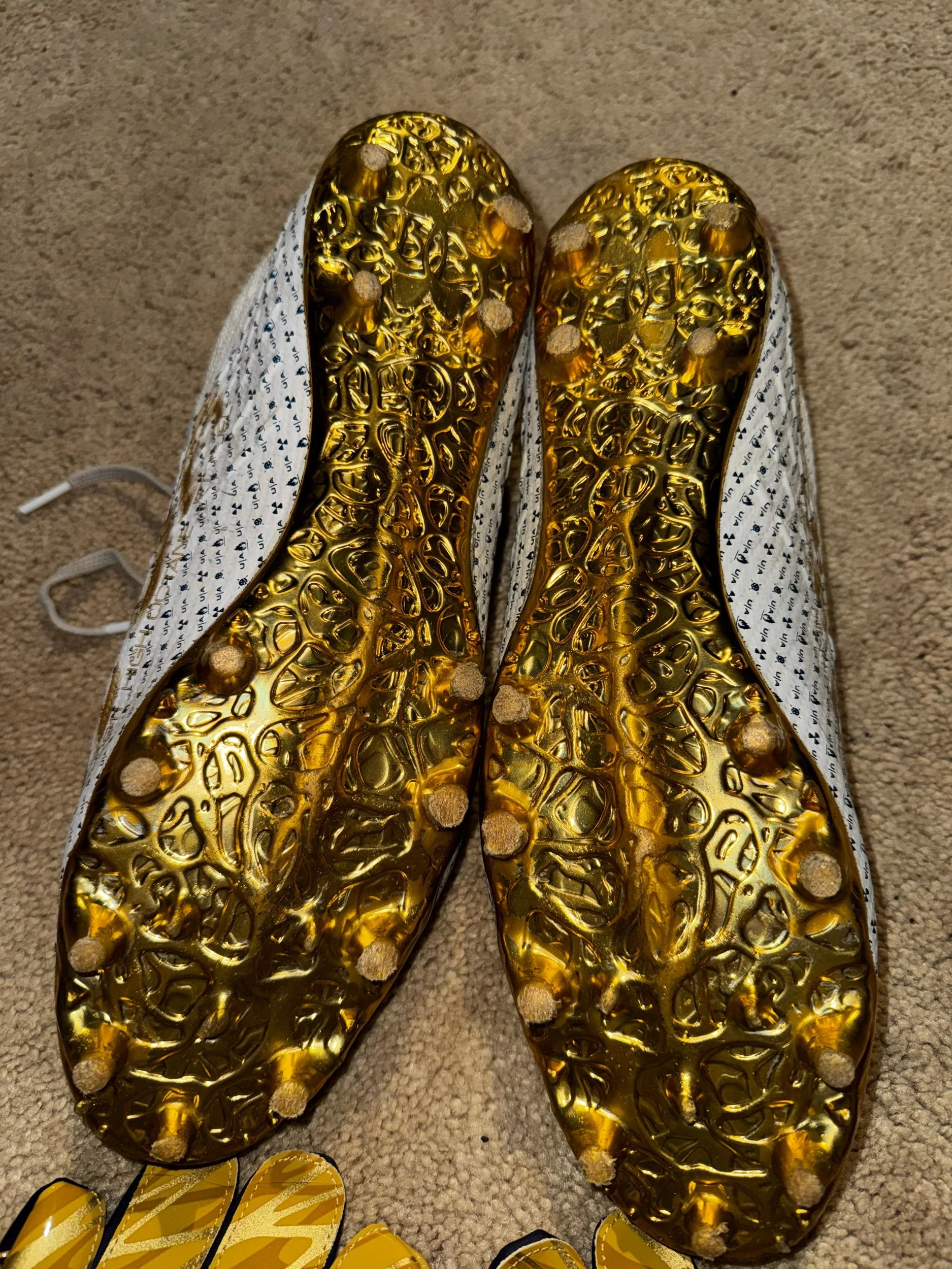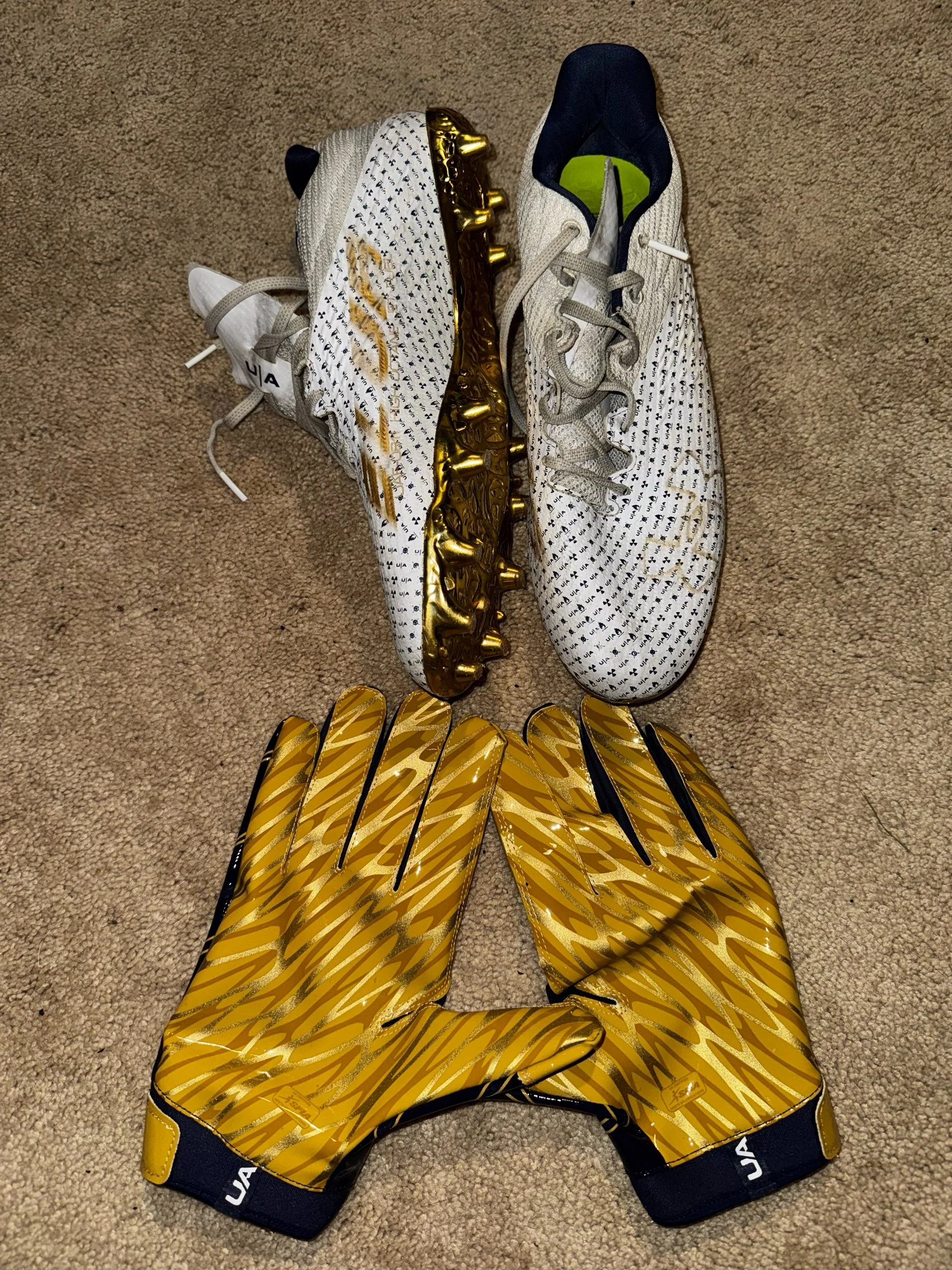 Each Notre Dame football helmet shines with a golden luster, reflecting a legacy of excellence and the unwavering spirit of the Fighting Irish. Categories: All Signed Notre Dame Full Sized Helmets Famous Notre Dame Artists Clothing Legends of The Game Featured Footballs Helmets Online Store All | Signed Notre Dame Full Sized Helmets | Famous Notre Dame Artists | Clothing | Legends of The Game | Featured | Footballs | Helmets | LIMITED EDITION "NOTRE DAME" TEDDY BEAR BY COOPERSTOWN BEARS OFFICIALLY LICENSED $285.00 Full size 1988 National Championship Notre Dame football $90.00 Sold Out Full Size Replica Notre Dame ball helmet painted $135.00 VERY RARE: Antique Flesh-Colored Knute Rockne Bust $2,500.00 Bryant Young San Francisco 49ers Team Issued Football Jersey Signed Sale Price: $685.00 Original Price: $785.00 Sale NOTRE DAME HEAD COACH KNUTE ROCKNE LARGE BUST JERRY MCKENNA $12,500.00 Notre Dame Football Movie Rudy Script signed by Rudy Ruettiger $385.00 RARE 1966 NOTRE DAME FOOTBALL VS MICHIGAN STATE FOOTBALL TICKET/PROGRAM $875.00 RARE 2012 Notre Dame Football Wilson Football Dublin Ireland $1,500.00 Rare Framed Notre Dame Four Horsemen Signatures Crowley, Layden, Miller, Stuhldreher. Grantland Rice $5,750.00 Full Size Notre Dame Football signed Bettis, Golic, and Rocket $185.00 1976 Full Size Notre Dame football Signed Joe Montana $185.00 Sold Out Seven Notre Dame Heisman trophy winners ballots $1,250.00 2019 TEAM ISSUED NOTRE DAME FOOTBALL UNDER ARMOUR GAME PANTS 150 YR GAME #71 $50.00 Use team issued Notre Dame baseball cleats, and new gloves $55.00 Used team issue, Notre Dame baseball Bryce Harper under Armour cleats, and New gloves $55.00 Used team issued Notre Dame football cleats and new gloves $35.00 Sold Out 2017 Game Used Notre Dame Football Game Pants #97 $50.00 Team Issued Notre Dame Football Home Jersey #16 $450.00 Team Issued Notre Dame Football Home Jersey #80 $475.00 2010 Team Issued Notre Dame Football Home Jersey $300.00 Used team issued Notre Dame football gloves $25.00 Sold Out Used team issued Notre Dame football gloves and cleats $40.00 Sold Out Notre Dame Football Jeremiyah Love signed photo 8x10 $85.00 Sold Out Limited Notre Dame football cooperstown Bear. $300.00 2010 HARRISON SMITH GAME USED NOTRE DAME FOOTBALL ADIDAS JERSEY HOME STEINER $1,850.00 2009 GAME USED NOTRE DAME FOOTBALL HOME JERSEY STEINER COA JIMMY CLAUSEN $1,500.00 2002 Notre Dame football banner used at the bowl game displayed at the ND ALUMNI ASSOCIATION $170.00 The FOUR WINNERS by KNUTE ROCKNE the story of a great football team signed Jack Rockne $350.00 ALL RISE THE REMARKABLE JOURNEY OF ALAN PAGE BY BILL MCGRANE SIGNED ALAN PAGE $250.00 GOD, COUNTRY, NOTRE DAME THE AUTOBIOGRAPHY OF THEODORE M. HESBURGH WITH JERRY REEDY $225.00 Sold Out Notre Dame Where have you gone? Signed Author Eric Hansen & Robin Weber $125.00 Simply Devine Memoirs of a Hall Of Fame coach Book Signed Dan Devine $175.00 Sold Out TRAVELS WITH TED & NED THEODORE M. HESBURGH EDITED BY JERRY REEDY SIGNED $125.00 University of Notre Dame Aerial Photo matted Cartier Field $195.00 1996 Tracy Stouffer University of Notre Dame Framed picture $185.00 Rare 2012 Team issued Notre Dame Football Shamrock Series Helmet $10,500.00 Wild Sports 5501-ND NCAA Notre Dame Fighting Irish Leather Office Chair $585.00 Circa 1990s Notre Dame Football Jersey #40 $325.00 Circa Early 2000s Notre Dame Football Jersey #1 $325.00 Circa 1990s Notre Dame Football Jersey #5 $325.00 Replica Signed Michael Mayer Jersey Inscribed Beckett $165.00 Replica Signed Lou Holtz Jersey Inscribed JSA $185.00 Sold Out Replica Signed Rudy Ruettiger Jersey Inscribed JSA $165.00 Sold Out Replica Signed Rudy Ruettiger jersey Inscribed Beckett COA $165.00 Sold Out Authentic Notre Dame Football Locker $4,500.00 Sold Out Authentic 1923 Notre Dame Football vs Purdue Football Ticket stub $2,750.00 Authentic 1930 Notre Dame Football vs University of Southern California Football Ticket stub $1,500.00 1927 Notre Dame Football vs USC Football Ticket Authentic $1,350.00 Notre Dame Football Coach Knute Rockne Original Photo & Signature $3,850.00 Sold Out Novel by Knute Rockne: "The Four Winners: The Head, The Hands, The Foot, The Ball." Hardcover, First Edition, signed Knute Rockne $4,650.00 Notre Dame Football Replica Jersey Signed Kyle Rudolph COA $145.00 Notre Dame Football Replica Jersey Signed Kris Haines $155.00 Notre Dame Football Replica Jersey Signed Wes Pritchett COA $125.00 Notre Dame Football Replica Jersey Signed Kyren Williams COA $185.00 Notre Dame Football Coach Knute Rockne Framed Photo copy Cover Time Magazine $25.50 Sold Out 1973 Notre Dame Football National Championship Framed Poster $85.00 Original Notre Dame Football Coach Rockne Photo PSA W/ dated magazine in photo $2,350.00 Rare Original Jim Wainwright Notre Dame Painting Signed $3,500.00 Authentic Notre Dame Football Stadium Brick $265.00 Rare Notre Dame and St Mary’s Music Sheet $185.00 Unique Notre Dame John Holladay Poster $150.00 Sold Out Notre Dame Baseball Full Size Helmet Signed by Jeff Samardzija $1,200.00 Rare Jeff Samardzija football/baseball Bobblehead $225.00 Notre Dame Football Mini Helmet Signed Benjamin Morrison COA $165.00 2017 Replica Notre Dame Football Rockne Heritage Game helmet Full Size $245.00 Sold Out NOTRE DAME FOOTBALL MINI HELMET SIGNED Drayk Bowen COA $165.00 Replica Notre Dame Football Joe Montana Signed Jersey COA $385.00 Sold Out Notre Dame football replica jersey signed Tim Brown COA $250.00 Sold Out Original Notre Dame football 1927 team photo Knute Rockne Head Coach $2,850.00 Original Notre Dame football 1926 team photo Knute Rockne Head Coach $1,950.00 University of Notre Dame the Spirit of Notre Dame Oak room miniatures usher $225.00 Sold Out Notre Dame football coach LOU HOLTZ STATUE with box $350.00 Notre Dame football coach Ara Parseghian bobble head with box $450.00 Notre Dame football mini helmet signed Ryan Grant $125.00 Notre Dame Stadium Commemorative coin First g