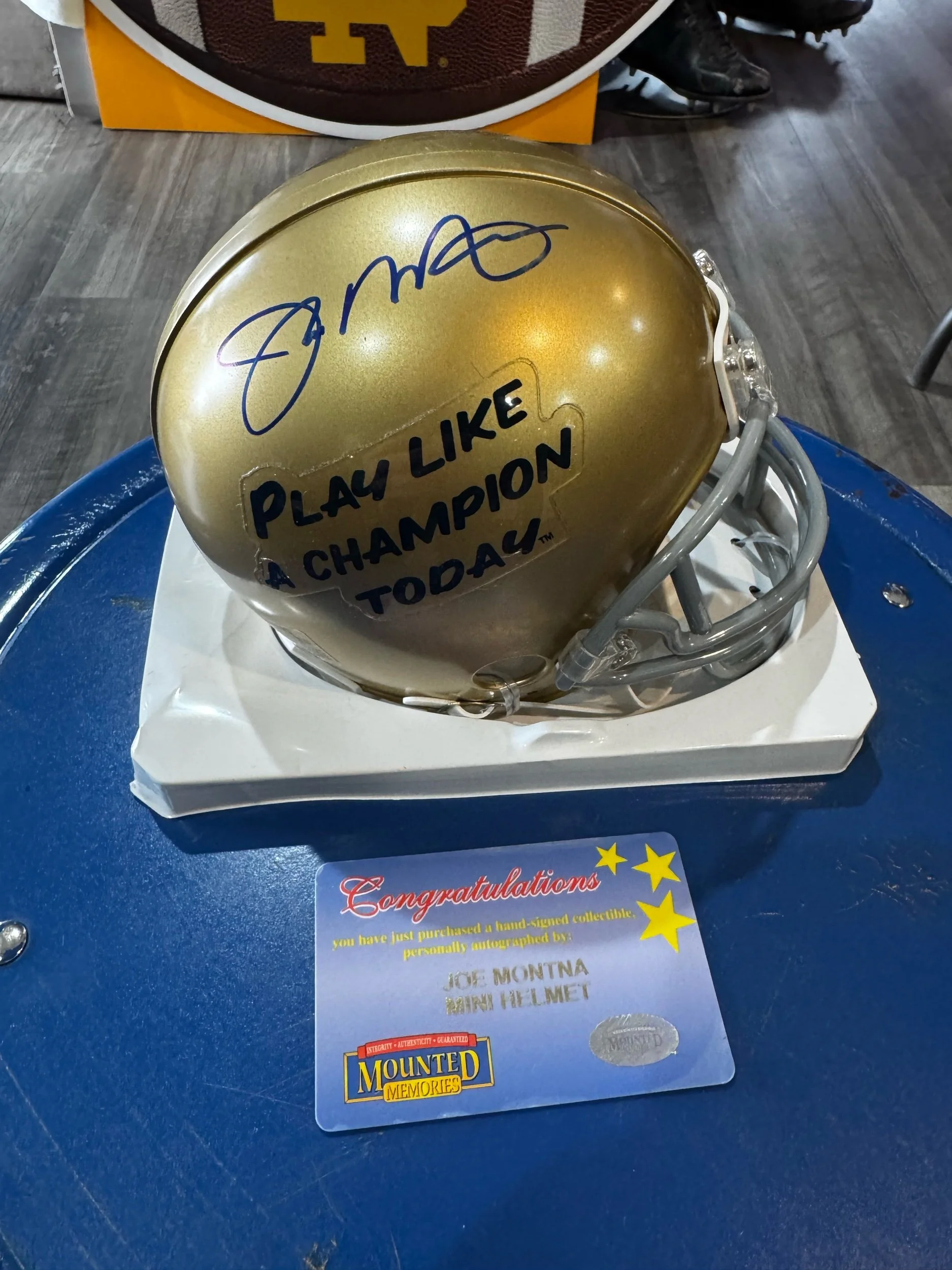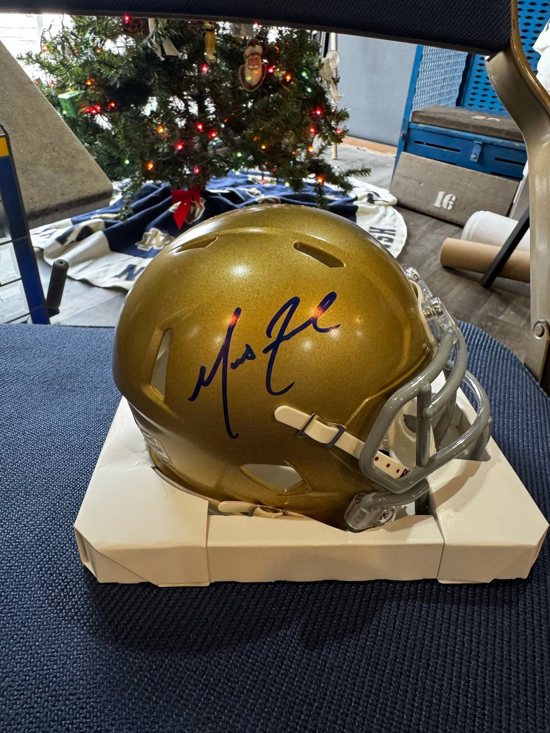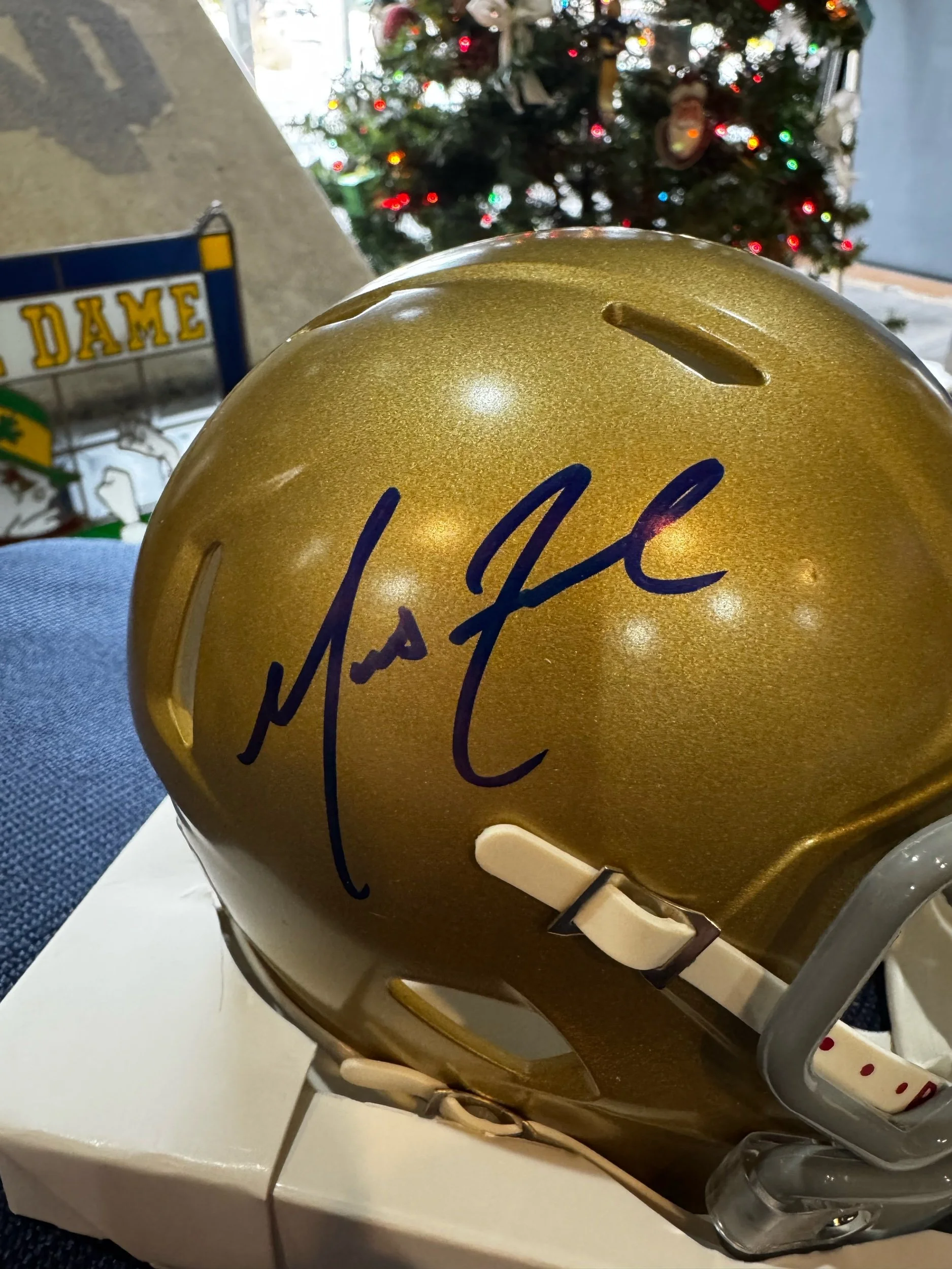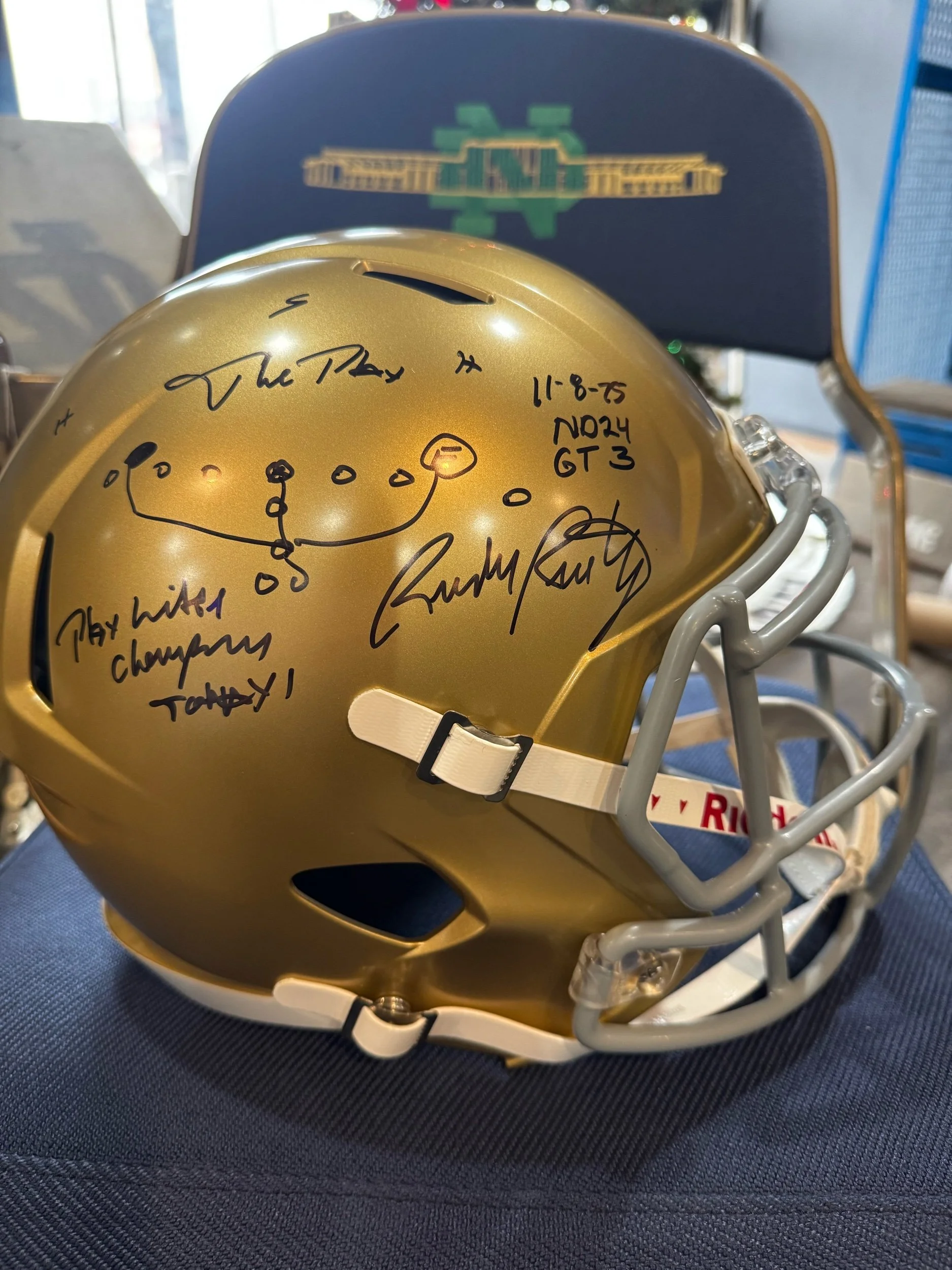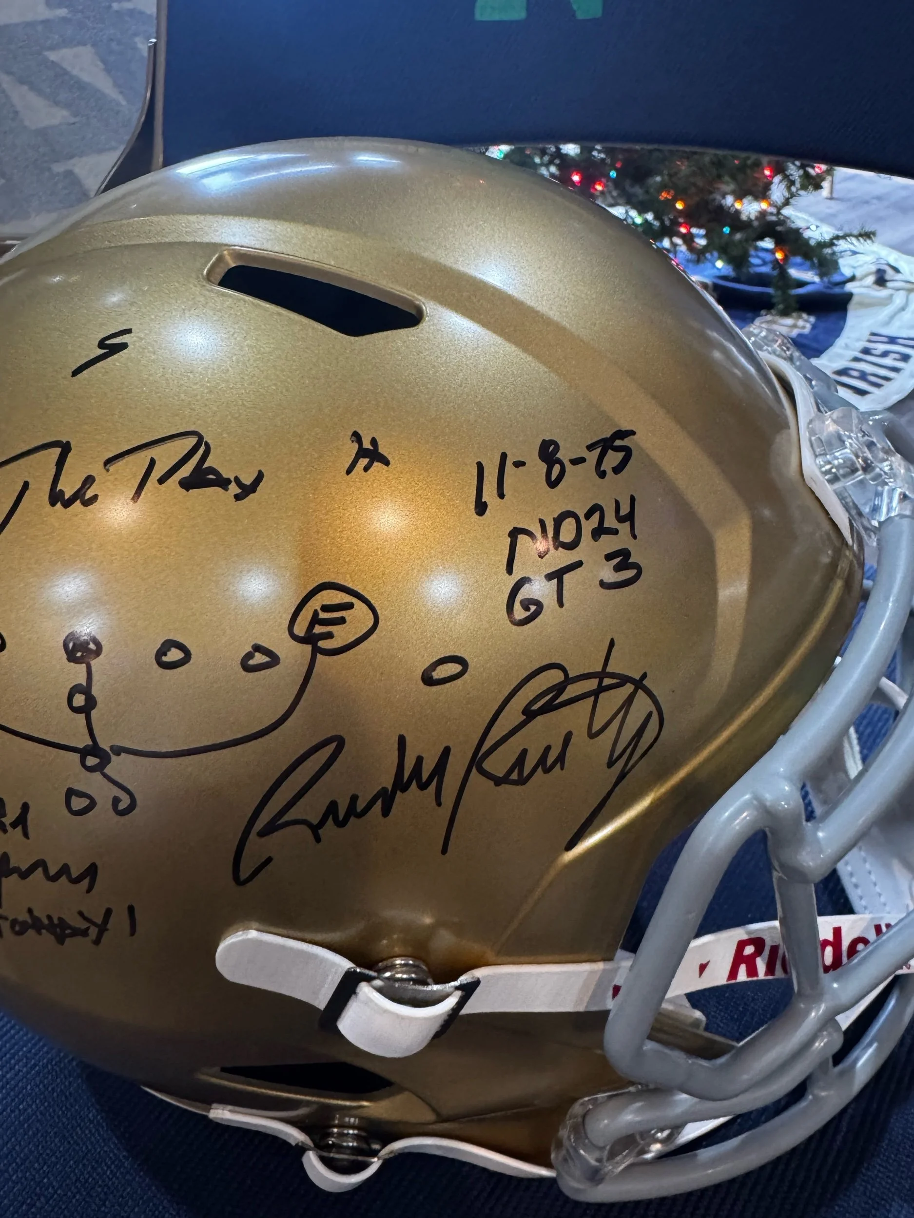 Each Notre Dame football helmet shines with a golden luster, reflecting a legacy of excellence and the unwavering spirit of the Fighting Irish. Online Store Categories: All Signed Notre Dame Full Sized Helmets Famous Notre Dame Artists Clothing Legends of The Game Featured Footballs Helmets Online Store All | Signed Notre Dame Full Sized Helmets | Famous Notre Dame Artists | Clothing | Legends of The Game | Featured | Footballs | Helmets | Notre Dame football Mini Helmet signed Marcus Freeman w COA $225.00 Full Size Replica Notre Dame football helmet signed Rudy Ruettiger inscribed w COA $350.00 Marcus Freeman Signed 11x17 inch Photo coa $185.00 Game Used Notre Dame Football Signed Lou Holtz $485.00 Notre Dame Play Like A Champion Today metal sign Signed Laurie Wenger $30.00 Notre Dame Football Mini Helmet Signed Joe Montana COA $350.00 Notre Dame football Mini helmet signed Jerome Bettis COA $350.00 Notre Dame Football Mini Helmet Signed Tim Brown COA $265.00 Limited /40 Notre Dame Football Mini Helmet Signed Reggie Brooks COA $185.00 Notre Dame Football Mini Helmet Signed Michael Mayer COA $145.00 Notre Dame Football Mini Helmet Signed Jack Kiser COA $135.00 Sold Out Notre Dame Football Mini Helmet Signed Rocket Ismail COA $185.00 Notre Dame Football Mini Helmet Signed Kyle Hamilton COA $165.00 Sold Out Notre Dame Play Like A Champion Today Mini helmet Signed Laurie Wenger $45.00 Notre Dame Play Like A Champion Today Poster Signed Laurie Wenger $30.00 Notre Dame football mini helmet signed JD Bertrand $115.00 Notre Dame football mini helmet signed Stephon Tuitt JSA COA $85.00 Notre Dame football mini helmet signed Brian Kelly Beckett COA $125.00 Notre Dame football mini helmet signed Julius Jones JSA COA $125.00 Notre Dame football mini helmet signed Equanimeous St. Brown $95.00 Notre Dame football mini helmet signed Jaylen Sneed $125.00 Notre Dame football mini helmet signed Kyle Rudolph $115.00 Notre Dame football mini helmet signed Jimmy Clausen $120.00 Notre Dame football mini helmet signed Gabriel Rubio $85.00 Notre Dame football mini helmet signed Michael Floyd $125.00 VERY RARE: Antique Flesh-Colored Knute Rockne Bust $2,500.00 Bryant Young San Francisco 49ers Team Issued Football Jersey Signed Sale Price: $685.00 Original Price: $785.00 Sale NOTRE DAME HEAD COACH KNUTE ROCKNE LARGE BUST JERRY MCKENNA $12,500.00 Notre Dame Football Movie Rudy Script signed by Rudy Ruettiger $385.00 RARE 1966 NOTRE DAME FOOTBALL VS MICHIGAN STATE FOOTBALL TICKET/PROGRAM $875.00 RARE 2012 Notre Dame Football Wilson Football Dublin Ireland $1,500.00 Rare Framed Notre Dame Four Horsemen Signatures Crowley, Layden, Miller, Stuhldreher. Grantland Rice $5,750.00 Seven Notre Dame Heisman trophy winners ballots $1,250.00 Use team issued Notre Dame baseball cleats, and new gloves $55.00 Used team issue, Notre Dame baseball Bryce Harper under Armour cleats, and New gloves $55.00 Team Issued Notre Dame Football Home Jersey #16 $450.00 Team Issued Notre Dame Football Home Jersey #80 $475.00 2010 Team Issued Notre Dame Football Home Jersey $300.00 Limited Notre Dame football cooperstown Bear. Sale Price: $285.00 Original Price: $300.00 Sale 2010 HARRISON SMITH GAME USED NOTRE DAME FOOTBALL ADIDAS JERSEY HOME STEINER $1,850.00 2009 GAME USED NOTRE DAME FOOTBALL HOME JERSEY STEINER COA JIMMY CLAUSEN $1,500.00 2002 Notre Dame football banner used at the bowl game displayed at the ND ALUMNI ASSOCIATION $170.00 The FOUR WINNERS by KNUTE ROCKNE the story of a great football team signed Jack Rockne $350.00 ALL RISE THE REMARKABLE JOURNEY OF ALAN PAGE BY BILL MCGRANE SIGNED ALAN PAGE $250.00 GOD, COUNTRY, NOTRE DAME THE AUTOBIOGRAPHY OF THEODORE M. HESBURGH WITH JERRY REEDY $225.00 Sold Out Notre Dame Where have you gone? Signed Author Eric Hansen & Robin Weber $125.00 Sold Out TRAVELS WITH TED & NED THEODORE M. HESBURGH EDITED BY JERRY REEDY SIGNED $125.00 University of Notre Dame Aerial Photo matted Cartier Field $195.00 1996 Tracy Stouffer University of Notre Dame Framed picture $185.00 Rare 2012 Team issued Notre Dame Football Shamrock Series Helmet $10,500.00 Wild Sports 5501-ND NCAA Notre Dame Fighting Irish Leather Office Chair $585.00 Sold Out Circa 1990s Notre Dame Football Jersey #40 $325.00 Circa Early 2000s Notre Dame Football Jersey #1 $325.00 Circa 1990s Notre Dame Football Jersey #5 $325.00 Authentic 1923 Notre Dame Football vs Purdue Football Ticket stub $2,750.00 Authentic 1930 Notre Dame Football vs University of Southern California Football Ticket stub $1,500.00 1927 Notre Dame Football vs USC Football Ticket Authentic $1,350.00 Notre Dame Football Replica Jersey Signed Kyle Rudolph COA $145.00 Notre Dame Football Replica Jersey Signed Kory Minor Sale Price: $125.00 Original Price: $155.00 Sale Notre Dame Football Replica Jersey Signed Wes Pritchett COA $125.00 Rare Original Jim Wainwright Notre Dame Painting Signed $3,500.00 Authentic Notre Dame Football Stadium Brick $265.00 Rare Notre Dame and St Mary’s Music Sheet Sale Price: $165.00 Original Price: $185.00 Sale Notre Dame Baseball Full Size Helmet Signed by Jeff Samardzija $1,200.00 Rare Jeff Samardzija football/baseball Bobblehead Sale Price: $185.00 Original Price: $225.00 Sale NOTRE DAME FOOTBALL MINI HELMET SIGNED Drayk Bowen COA $165.00 Original Notre Dame football 1927 team photo Knute Rockne Head Coach $2,850.00 Original Notre Dame football 1926 team photo Knute Rockne Head Coach Sale Price: $1,850.00 Original Price: $1,950.00 Sale Notre Dame football coach LOU HOLTZ STATUE with box $350.00 Notre Dame football coach Ara Parseghian bobble head with box $450.00 Sold Out Notre Dame football mini helmet signed Ryan Grant $125.00 Notre Dame Stadium Commemorative coin First game Georgia Tech 1997 $85.00 Vintage Notre Dame Tie Clasp 1950s or 60s $125.00 Vintage Notre Dame Tie Clasp 1950s $125.00 Notre Dame Football Full Size Four Horsemen logo $110.00 NOTRE DAME SOUTH BEND by SOUTH SHORE LINE Copy Poster $125.00 Notre Dame football Varsity C