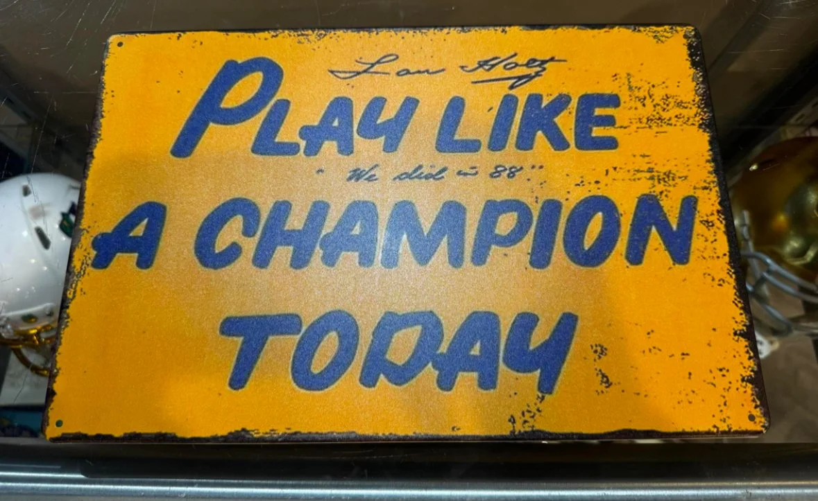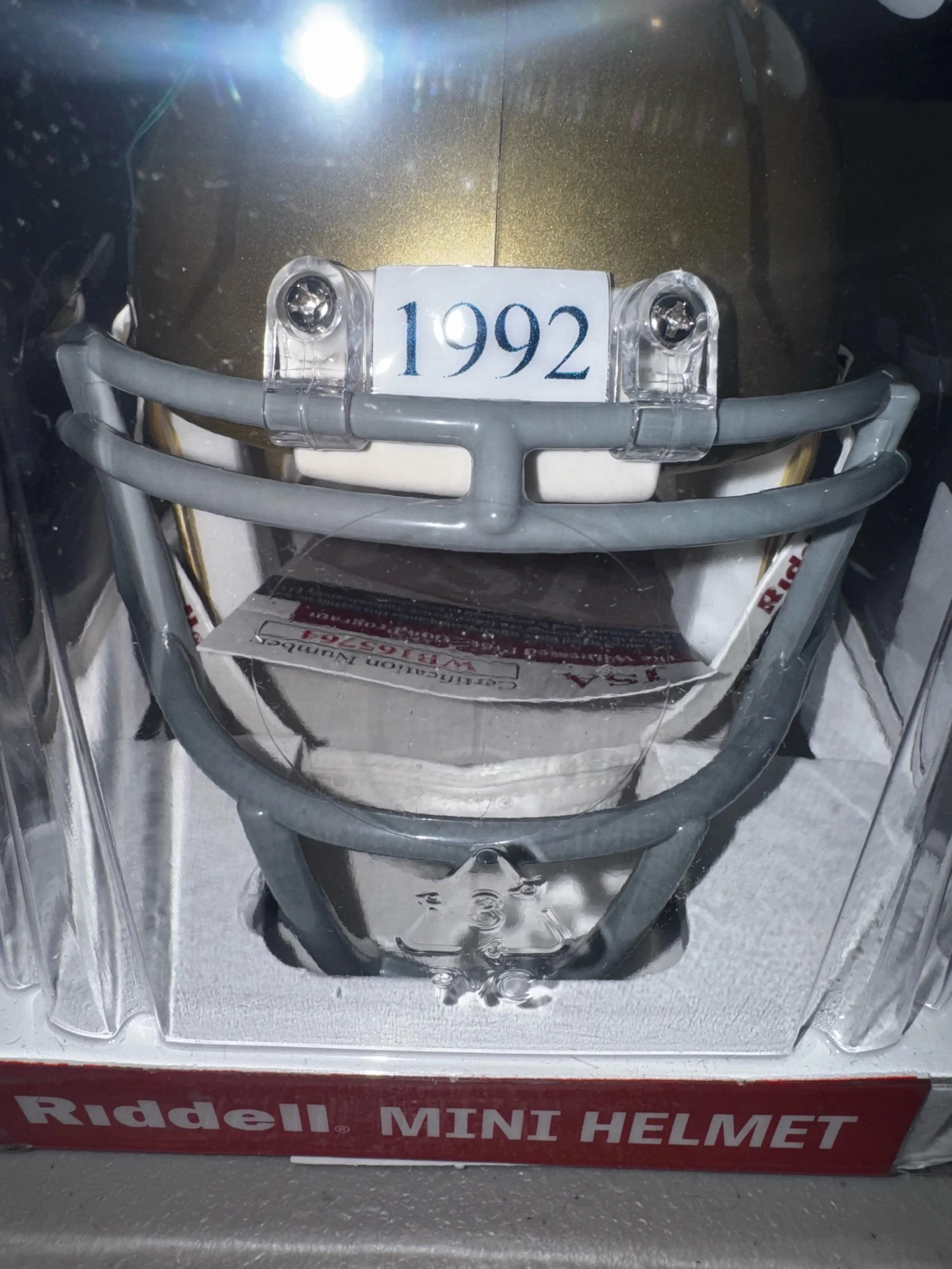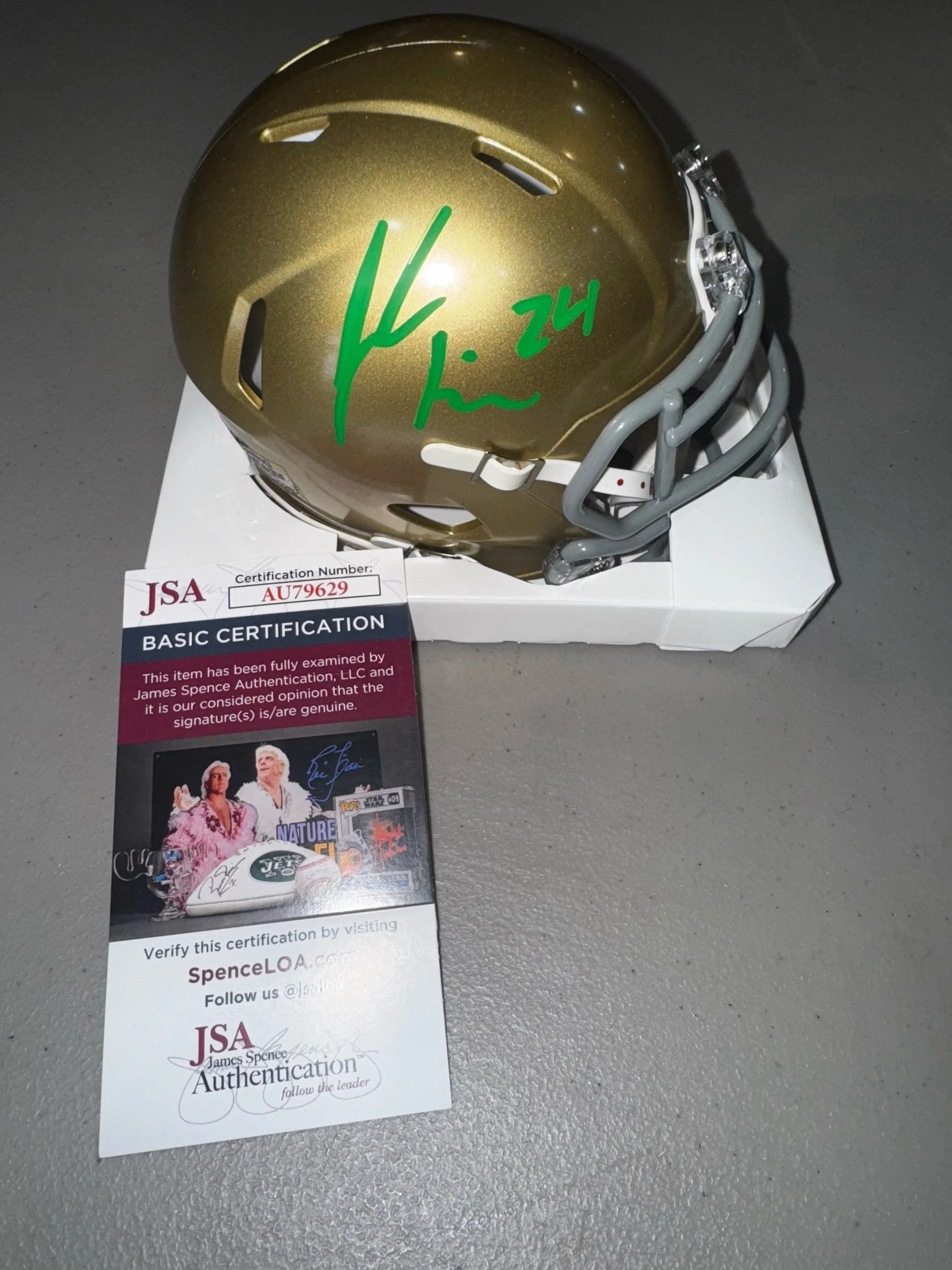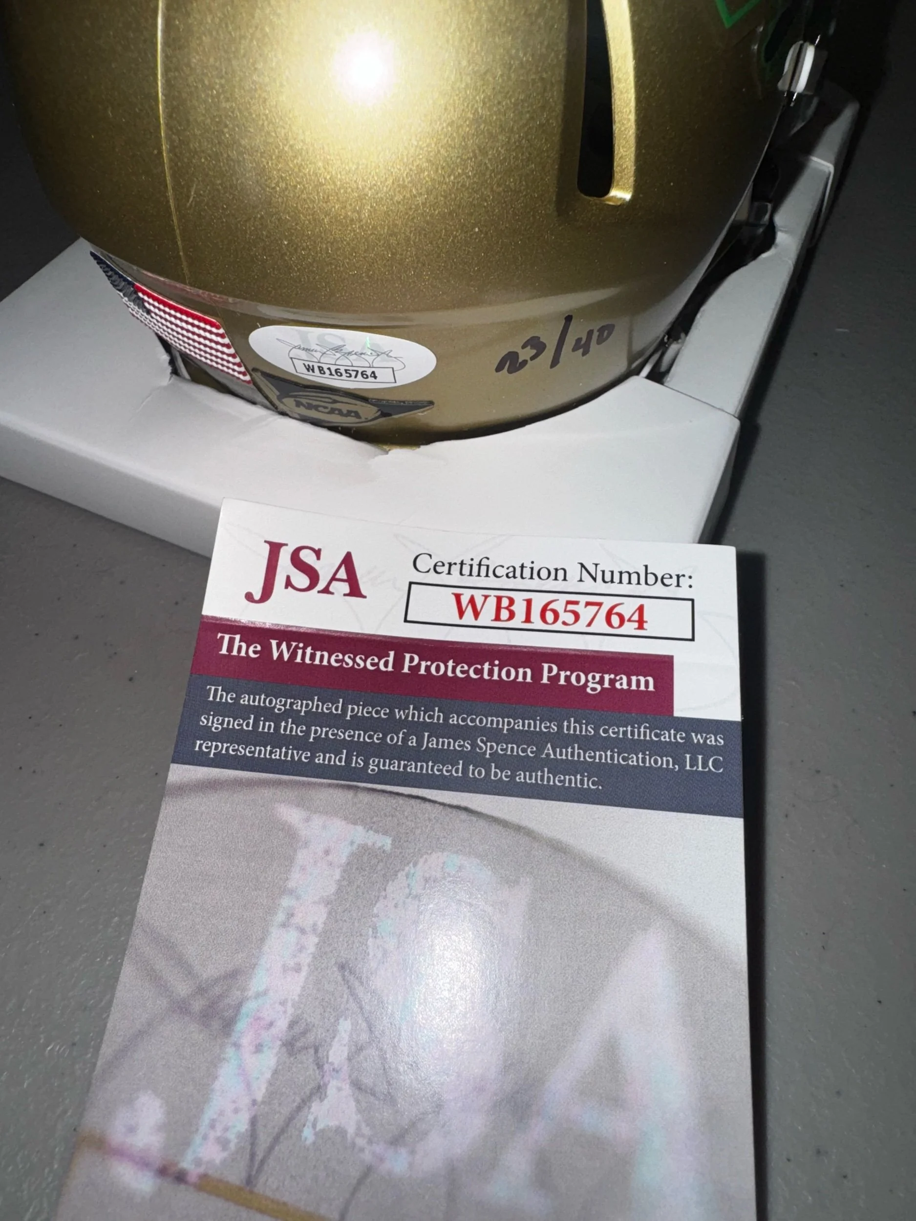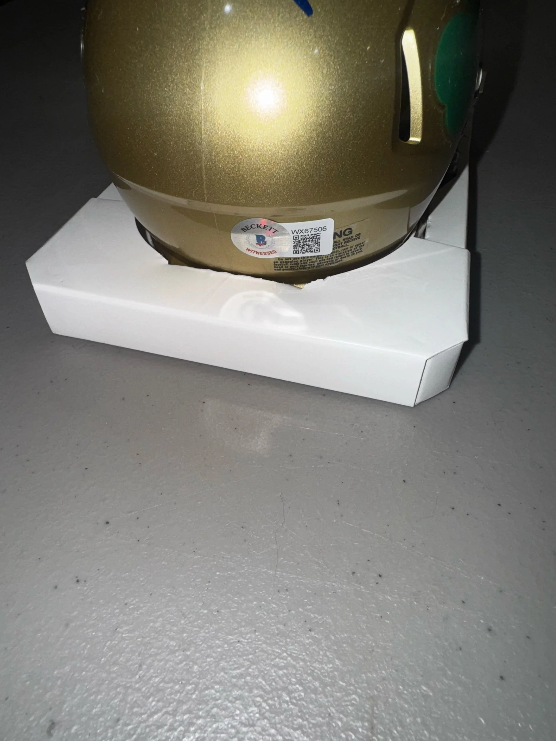 Each Notre Dame football helmet shines with a golden luster, reflecting a legacy of excellence and the unwavering spirit of the Fighting Irish. Online Store Categories: All Signed Notre Dame Full Sized Helmets Famous Notre Dame Artists Clothing Legends of The Game Featured Footballs Helmets Online Store All | Signed Notre Dame Full Sized Helmets | Famous Notre Dame Artists | Clothing | Legends of The Game | Featured | Footballs | Helmets | Notre Dame football Mini Helmet signed Marcus Freeman w COA $225.00 Full Size Replica Notre Dame football helmet signed Rudy Ruettiger inscribed w COA $350.00 Marcus Freeman Signed 11x17 inch Photo coa $185.00 Game Used Notre Dame Football Signed Lou Holtz $485.00 Notre Dame Play Like A Champion Today metal sign Signed Laurie Wenger $30.00 Notre Dame Football Mini Helmet Signed Joe Montana COA $350.00 Notre Dame football Mini helmet signed Jerome Bettis COA $350.00 Notre Dame Football Mini Helmet Signed Tim Brown COA $265.00 Limited /40 Notre Dame Football Mini Helmet Signed Reggie Brooks COA $185.00 Notre Dame Football Mini Helmet Signed Michael Mayer COA $145.00 Notre Dame Football Mini Helmet Signed Jack Kiser COA $135.00 Sold Out Notre Dame Football Mini Helmet Signed Rocket Ismail COA $185.00 Notre Dame Football Mini Helmet Signed Kyle Hamilton COA $165.00 Sold Out Notre Dame Play Like A Champion Today Mini helmet Signed Laurie Wenger $45.00 Notre Dame Play Like A Champion Today Poster Signed Laurie Wenger $30.00 Notre Dame football mini helmet signed JD Bertrand $115.00 Notre Dame football mini helmet signed Stephon Tuitt JSA COA $85.00 Notre Dame football mini helmet signed Brian Kelly Beckett COA $125.00 Notre Dame football mini helmet signed Julius Jones JSA COA $125.00 Notre Dame football mini helmet signed Equanimeous St. Brown $95.00 Notre Dame football mini helmet signed Jaylen Sneed $125.00 Notre Dame football mini helmet signed Kyle Rudolph $115.00 Notre Dame football mini helmet signed Jimmy Clausen $120.00 Notre Dame football mini helmet signed Gabriel Rubio $85.00 Notre Dame football mini helmet signed Michael Floyd $125.00 VERY RARE: Antique Flesh-Colored Knute Rockne Bust $2,500.00 Bryant Young San Francisco 49ers Team Issued Football Jersey Signed Sale Price: $685.00 Original Price: $785.00 Sale NOTRE DAME HEAD COACH KNUTE ROCKNE LARGE BUST JERRY MCKENNA $12,500.00 Notre Dame Football Movie Rudy Script signed by Rudy Ruettiger $385.00 RARE 1966 NOTRE DAME FOOTBALL VS MICHIGAN STATE FOOTBALL TICKET/PROGRAM $875.00 RARE 2012 Notre Dame Football Wilson Football Dublin Ireland $1,500.00 Rare Framed Notre Dame Four Horsemen Signatures Crowley, Layden, Miller, Stuhldreher. Grantland Rice $5,750.00 Seven Notre Dame Heisman trophy winners ballots $1,250.00 Use team issued Notre Dame baseball cleats, and new gloves $55.00 Used team issue, Notre Dame baseball Bryce Harper under Armour cleats, and New gloves $55.00 Team Issued Notre Dame Football Home Jersey #16 $450.00 Team Issued Notre Dame Football Home Jersey #80 $475.00 2010 Team Issued Notre Dame Football Home Jersey $300.00 Limited Notre Dame football cooperstown Bear. Sale Price: $285.00 Original Price: $300.00 Sale 2010 HARRISON SMITH GAME USED NOTRE DAME FOOTBALL ADIDAS JERSEY HOME STEINER $1,850.00 2009 GAME USED NOTRE DAME FOOTBALL HOME JERSEY STEINER COA JIMMY CLAUSEN $1,500.00 2002 Notre Dame football banner used at the bowl game displayed at the ND ALUMNI ASSOCIATION $170.00 The FOUR WINNERS by KNUTE ROCKNE the story of a great football team signed Jack Rockne $350.00 ALL RISE THE REMARKABLE JOURNEY OF ALAN PAGE BY BILL MCGRANE SIGNED ALAN PAGE $250.00 GOD, COUNTRY, NOTRE DAME THE AUTOBIOGRAPHY OF THEODORE M. HESBURGH WITH JERRY REEDY $225.00 Sold Out Notre Dame Where have you gone? Signed Author Eric Hansen & Robin Weber $125.00 Sold Out TRAVELS WITH TED & NED THEODORE M. HESBURGH EDITED BY JERRY REEDY SIGNED $125.00 University of Notre Dame Aerial Photo matted Cartier Field $195.00 1996 Tracy Stouffer University of Notre Dame Framed picture $185.00 Rare 2012 Team issued Notre Dame Football Shamrock Series Helmet $10,500.00 Wild Sports 5501-ND NCAA Notre Dame Fighting Irish Leather Office Chair $585.00 Sold Out Circa 1990s Notre Dame Football Jersey #40 $325.00 Circa Early 2000s Notre Dame Football Jersey #1 $325.00 Circa 1990s Notre Dame Football Jersey #5 $325.00 Authentic 1923 Notre Dame Football vs Purdue Football Ticket stub $2,750.00 Authentic 1930 Notre Dame Football vs University of Southern California Football Ticket stub $1,500.00 1927 Notre Dame Football vs USC Football Ticket Authentic $1,350.00 Notre Dame Football Replica Jersey Signed Kyle Rudolph COA $145.00 Notre Dame Football Replica Jersey Signed Kory Minor Sale Price: $125.00 Original Price: $155.00 Sale Notre Dame Football Replica Jersey Signed Wes Pritchett COA $125.00 Rare Original Jim Wainwright Notre Dame Painting Signed $3,500.00 Authentic Notre Dame Football Stadium Brick $265.00 Rare Notre Dame and St Mary’s Music Sheet Sale Price: $165.00 Original Price: $185.00 Sale Notre Dame Baseball Full Size Helmet Signed by Jeff Samardzija $1,200.00 Rare Jeff Samardzija football/baseball Bobblehead Sale Price: $185.00 Original Price: $225.00 Sale NOTRE DAME FOOTBALL MINI HELMET SIGNED Drayk Bowen COA $165.00 Original Notre Dame football 1927 team photo Knute Rockne Head Coach $2,850.00 Original Notre Dame football 1926 team photo Knute Rockne Head Coach Sale Price: $1,850.00 Original Price: $1,950.00 Sale Notre Dame football coach LOU HOLTZ STATUE with box $350.00 Notre Dame football coach Ara Parseghian bobble head with box $450.00 Sold Out Notre Dame football mini helmet signed Ryan Grant $125.00 Notre Dame Stadium Commemorative coin First game Georgia Tech 1997 $85.00 Vintage Notre Dame Tie Clasp 1950s or 60s $125.00 Vintage Notre Dame Tie Clasp 1950s $125.00 Notre Dame Football Full Size Four Horsemen logo $110.00 NOTRE DAME SOUTH BEND by SOUTH SHORE LINE Copy Poster $125.00 Notre Dame football Varsity C