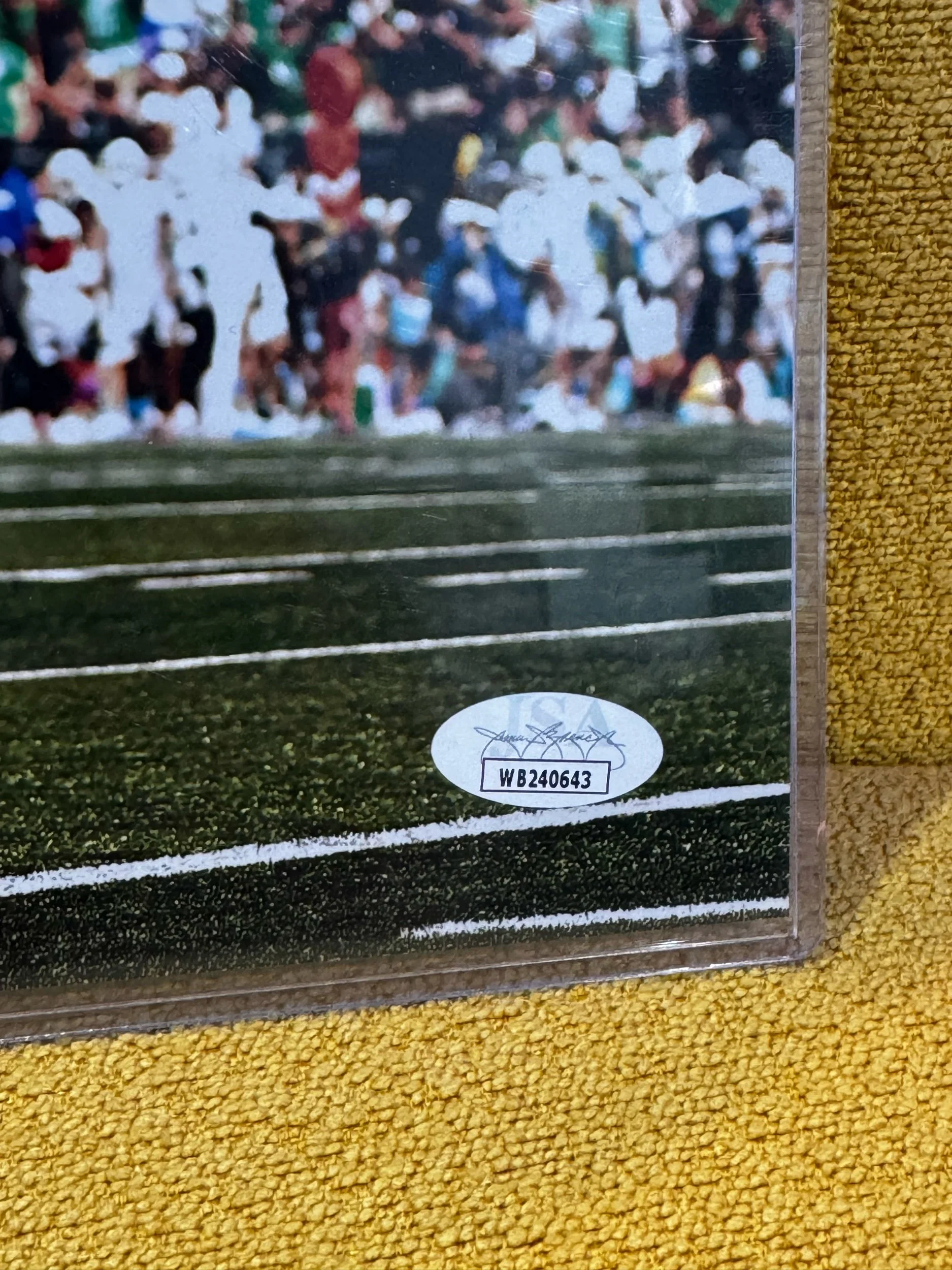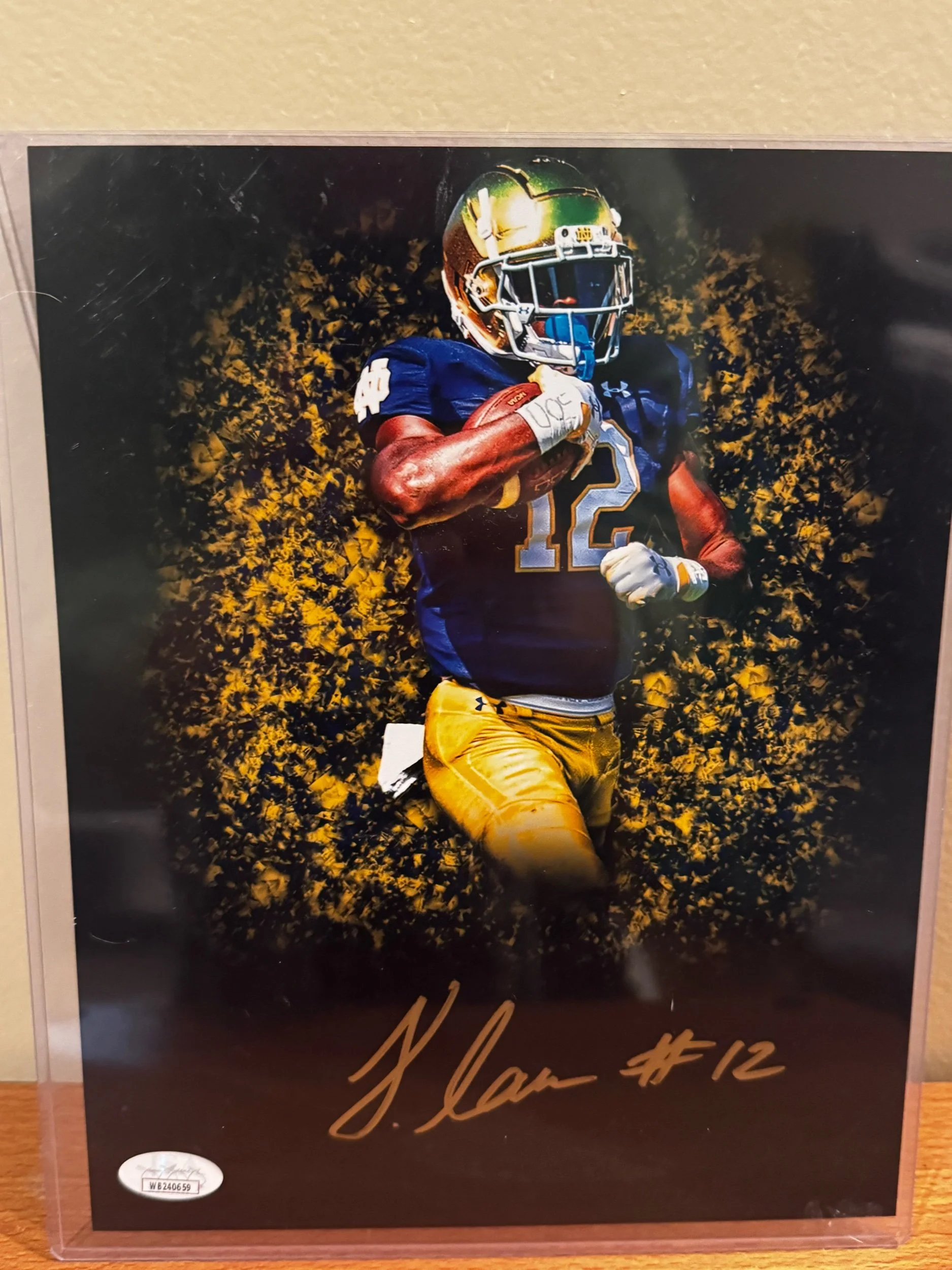 Each Notre Dame football helmet shines with a golden luster, reflecting a legacy of excellence and the unwavering spirit of the Fighting Irish. Categories: All Signed Notre Dame Full Sized Helmets Famous Notre Dame Artists Clothing Legends of The Game Featured Footballs Helmets Online Store All | Signed Notre Dame Full Sized Helmets | Famous Notre Dame Artists | Clothing | Legends of The Game | Featured | Footballs | Helmets | 8x10 Jeremiyah Love Notre Dame Football signed JSA $90.00 Jeff Samardzija 11x14 Notre Dame football signed photo $185.00 8x10 Jeremiyah Love Notre Dame Football signed JSA $90.00 LIMITED EDITION "NOTRE DAME" TEDDY BEAR BY COOPERSTOWN BEARS OFFICIALLY LICENSED $285.00 Full size 1988 National Championship Notre Dame football $90.00 Sold Out Full Size Replica Notre Dame ball helmet painted $135.00 VERY RARE: Antique Flesh-Colored Knute Rockne Bust $2,500.00 Bryant Young San Francisco 49ers Team Issued Football Jersey Signed Sale Price: $685.00 Original Price: $785.00 Sale NOTRE DAME HEAD COACH KNUTE ROCKNE LARGE BUST JERRY MCKENNA $12,500.00 Notre Dame Football Movie Rudy Script signed by Rudy Ruettiger $385.00 RARE 1966 NOTRE DAME FOOTBALL VS MICHIGAN STATE FOOTBALL TICKET/PROGRAM $875.00 RARE 2012 Notre Dame Football Wilson Football Dublin Ireland $1,500.00 Rare Framed Notre Dame Four Horsemen Signatures Crowley, Layden, Miller, Stuhldreher. Grantland Rice $5,750.00 Full Size Notre Dame Football signed Bettis, Golic, and Rocket $185.00 1976 Full Size Notre Dame football Signed Joe Montana $185.00 Sold Out Seven Notre Dame Heisman trophy winners ballots $1,250.00 2019 TEAM ISSUED NOTRE DAME FOOTBALL UNDER ARMOUR GAME PANTS 150 YR GAME #71 $50.00 Use team issued Notre Dame baseball cleats, and new gloves $55.00 Used team issue, Notre Dame baseball Bryce Harper under Armour cleats, and New gloves $55.00 Used team issued Notre Dame football cleats and new gloves $35.00 Sold Out 2017 Game Used Notre Dame Football Game Pants #97 $50.00 Team Issued Notre Dame Football Home Jersey #16 $450.00 Team Issued Notre Dame Football Home Jersey #80 $475.00 2010 Team Issued Notre Dame Football Home Jersey $300.00 Used team issued Notre Dame football gloves $25.00 Sold Out Used team issued Notre Dame football gloves and cleats $40.00 Sold Out Notre Dame Football Jeremiyah Love signed photo 8x10 $85.00 Sold Out Limited Notre Dame football cooperstown Bear. $300.00 2010 HARRISON SMITH GAME USED NOTRE DAME FOOTBALL ADIDAS JERSEY HOME STEINER $1,850.00 2009 GAME USED NOTRE DAME FOOTBALL HOME JERSEY STEINER COA JIMMY CLAUSEN $1,500.00 2002 Notre Dame football banner used at the bowl game displayed at the ND ALUMNI ASSOCIATION $170.00 The FOUR WINNERS by KNUTE ROCKNE the story of a great football team signed Jack Rockne $350.00 ALL RISE THE REMARKABLE JOURNEY OF ALAN PAGE BY BILL MCGRANE SIGNED ALAN PAGE $250.00 GOD, COUNTRY, NOTRE DAME THE AUTOBIOGRAPHY OF THEODORE M. HESBURGH WITH JERRY REEDY $225.00 Sold Out Notre Dame Where have you gone? Signed Author Eric Hansen & Robin Weber $125.00 Simply Devine Memoirs of a Hall Of Fame coach Book Signed Dan Devine $175.00 Sold Out TRAVELS WITH TED & NED THEODORE M. HESBURGH EDITED BY JERRY REEDY SIGNED $125.00 University of Notre Dame Aerial Photo matted Cartier Field $195.00 1996 Tracy Stouffer University of Notre Dame Framed picture $185.00 Rare 2012 Team issued Notre Dame Football Shamrock Series Helmet $10,500.00 Wild Sports 5501-ND NCAA Notre Dame Fighting Irish Leather Office Chair $585.00 Circa 1990s Notre Dame Football Jersey #40 $325.00 Circa Early 2000s Notre Dame Football Jersey #1 $325.00 Circa 1990s Notre Dame Football Jersey #5 $325.00 Replica Signed Michael Mayer Jersey Inscribed Beckett $165.00 Replica Signed Lou Holtz Jersey Inscribed JSA $185.00 Sold Out Replica Signed Rudy Ruettiger Jersey Inscribed JSA $165.00 Sold Out Replica Signed Rudy Ruettiger jersey Inscribed Beckett COA $165.00 Sold Out Authentic Notre Dame Football Locker $4,500.00 Sold Out Authentic 1923 Notre Dame Football vs Purdue Football Ticket stub $2,750.00 Authentic 1930 Notre Dame Football vs University of Southern California Football Ticket stub $1,500.00 1927 Notre Dame Football vs USC Football Ticket Authentic $1,350.00 Notre Dame Football Coach Knute Rockne Original Photo & Signature $3,850.00 Sold Out Novel by Knute Rockne: "The Four Winners: The Head, The Hands, The Foot, The Ball." Hardcover, First Edition, signed Knute Rockne $4,650.00 Notre Dame Football Replica Jersey Signed Kyle Rudolph COA $145.00 Notre Dame Football Replica Jersey Signed Kris Haines $155.00 Notre Dame Football Replica Jersey Signed Wes Pritchett COA $125.00 Notre Dame Football Replica Jersey Signed Kyren Williams COA $185.00 Notre Dame Football Coach Knute Rockne Framed Photo copy Cover Time Magazine $25.50 Sold Out 1973 Notre Dame Football National Championship Framed Poster $85.00 Original Notre Dame Football Coach Rockne Photo PSA W/ dated magazine in photo $2,350.00 Rare Original Jim Wainwright Notre Dame Painting Signed $3,500.00 Authentic Notre Dame Football Stadium Brick $265.00 Rare Notre Dame and St Mary’s Music Sheet $185.00 Unique Notre Dame John Holladay Poster $150.00 Sold Out Notre Dame Baseball Full Size Helmet Signed by Jeff Samardzija $1,200.00 Rare Jeff Samardzija football/baseball Bobblehead $225.00 Notre Dame Football Mini Helmet Signed Benjamin Morrison COA $165.00 2017 Replica Notre Dame Football Rockne Heritage Game helmet Full Size $245.00 Sold Out NOTRE DAME FOOTBALL MINI HELMET SIGNED Drayk Bowen COA $165.00 Replica Notre Dame Football Joe Montana Signed Jersey COA $385.00 Sold Out Notre Dame football replica jersey signed Tim Brown COA $250.00 Sold Out Original Notre Dame football 1927 team photo Knute Rockne Head Coach $2,850.00 Original Notre Dame football 1926 team photo Knute Rockne Head Coach $1,950.00 University of Notre Dame the Spirit of Notre Dame Oak room miniatures usher $225.00 Sold Out Notre Dame football coach LOU HOLTZ STATUE with box $3